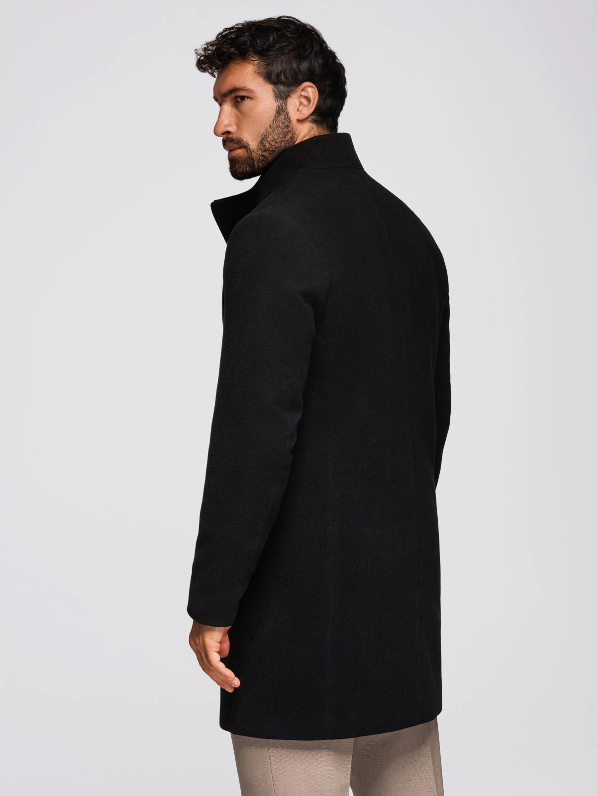 Palton bărbătesc cu guler înalt și închidere asimetrică - negru V2 OM-COWC-0141