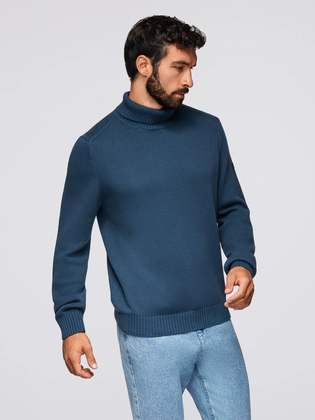 Pulover tricotat bărbătesc cu guler înalt - albastru închis V2 OM-SWTN-0163