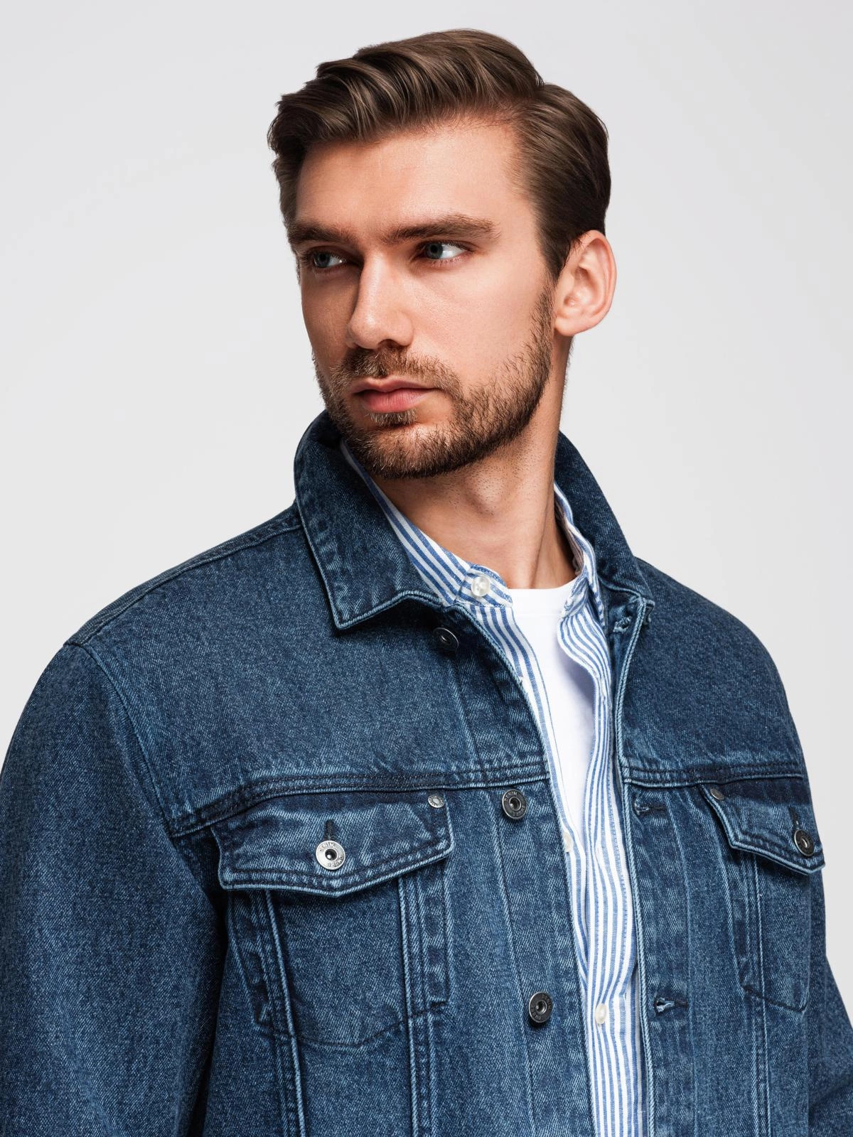 Jachetă bărbătească din denim katana cu washem - albastru V4 OM-JADJ-0219