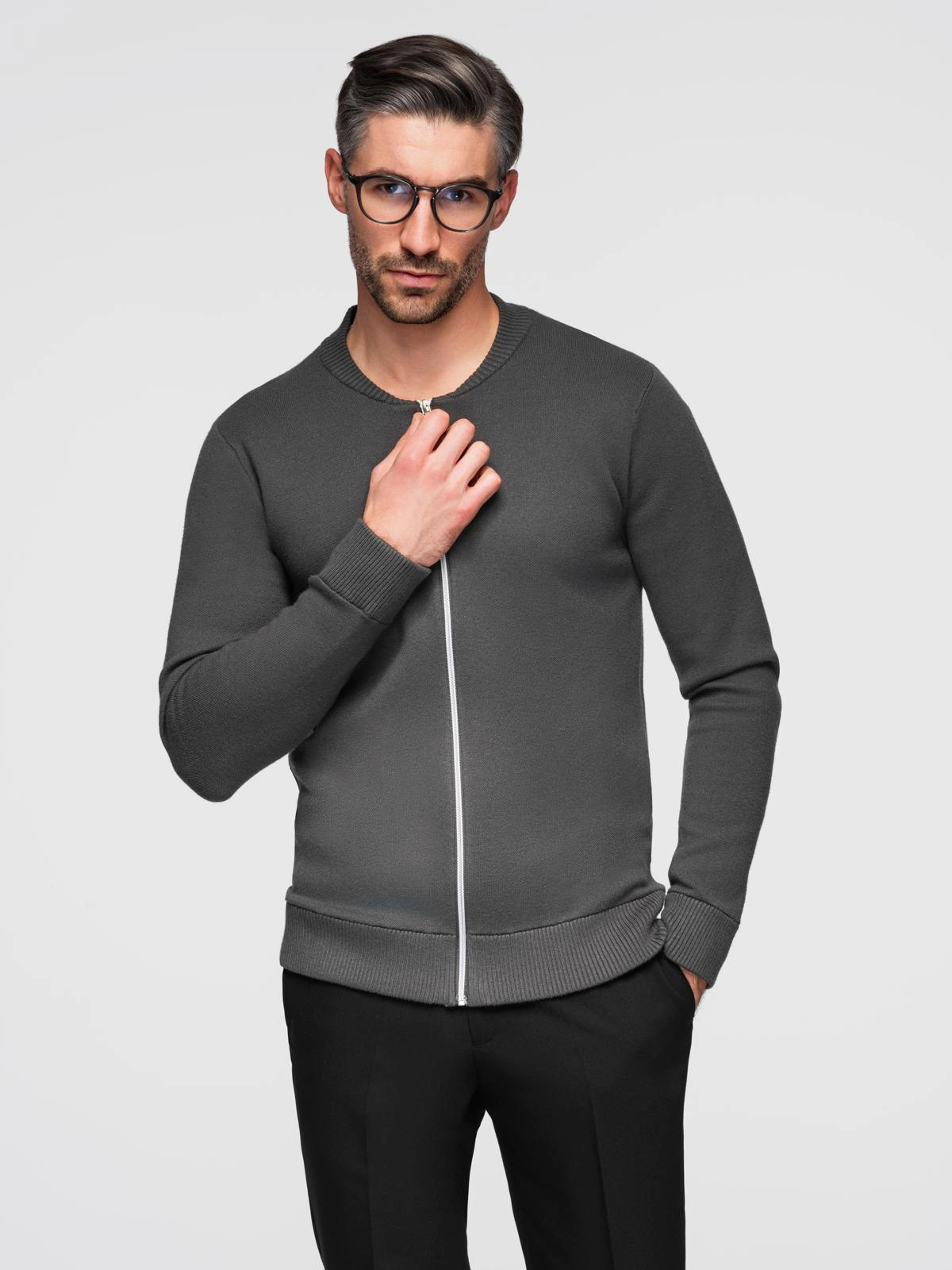 Pulover simplu cu fermoar pentru bărbați - grafit V2 OM-SWZS-0146