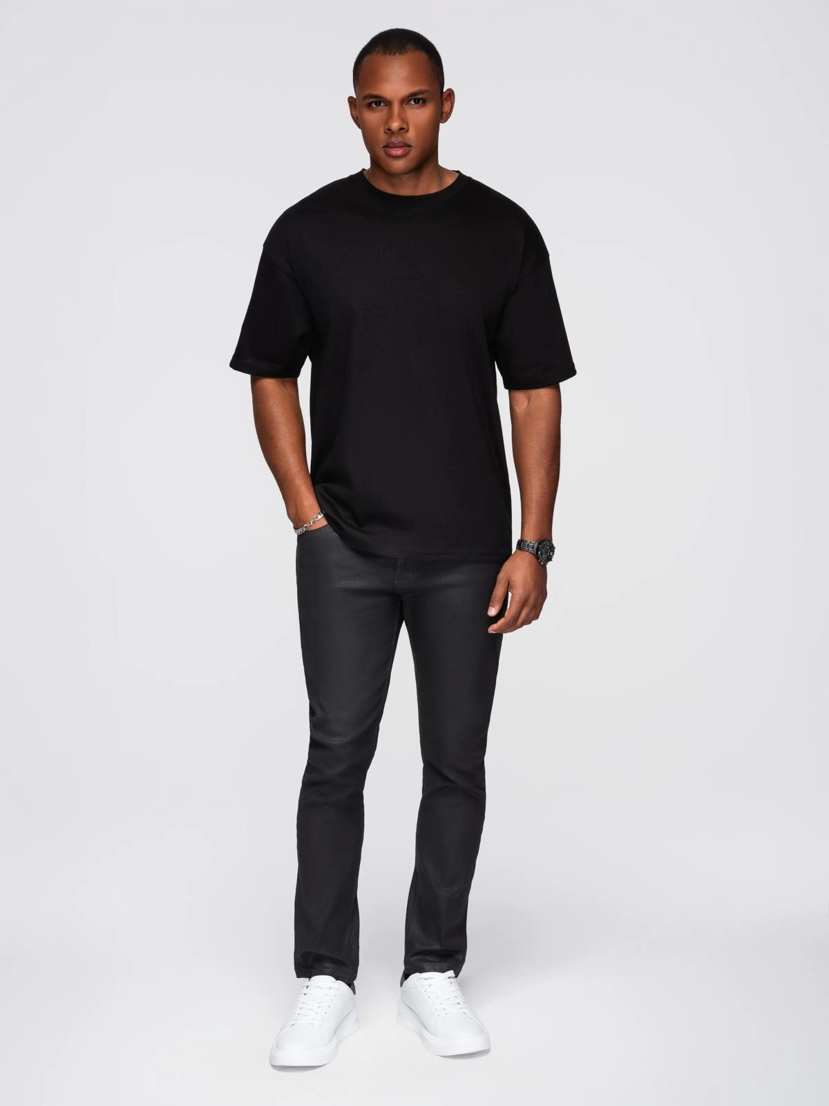 Tricou bărbătesc din bumbac cu motiv cu aripi din paiete pe spate - negru V1 OM-TSCT-0289