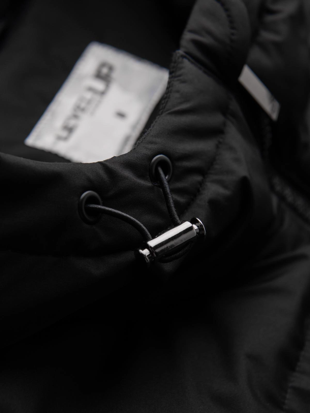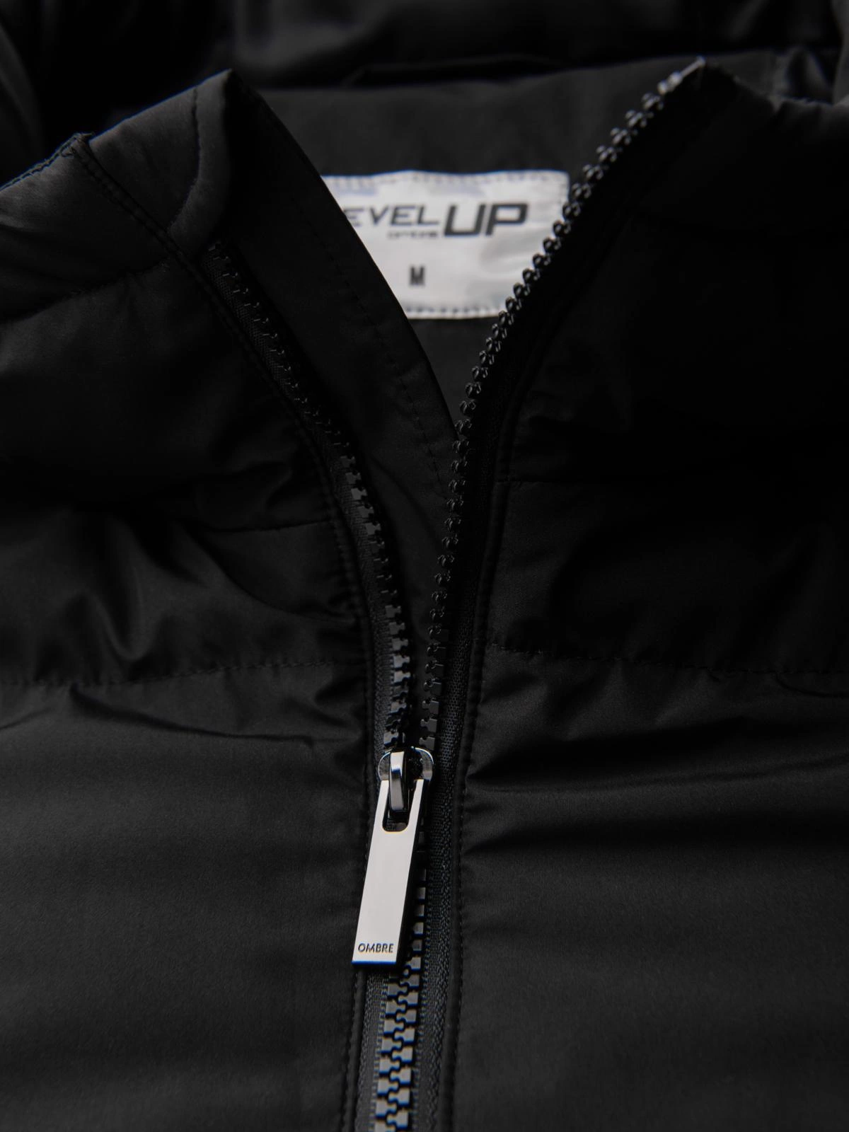 Jachetă clasică lungă cu glugă pentru bărbați - negru V1 OM-JALJ-0269