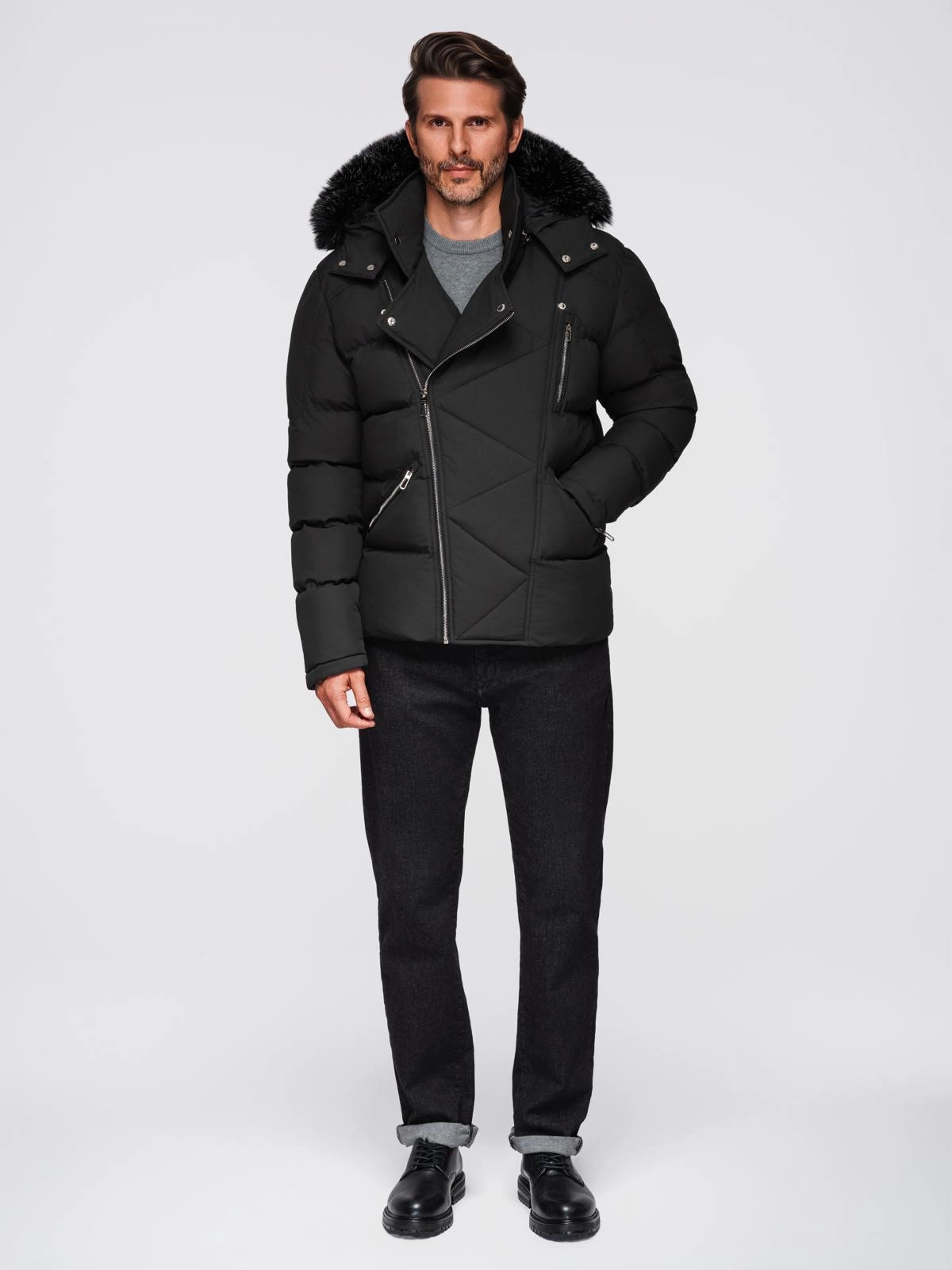 Jachetă matlasată pentru bărbați cu glugă - negru V1 OM-JAHP-0252