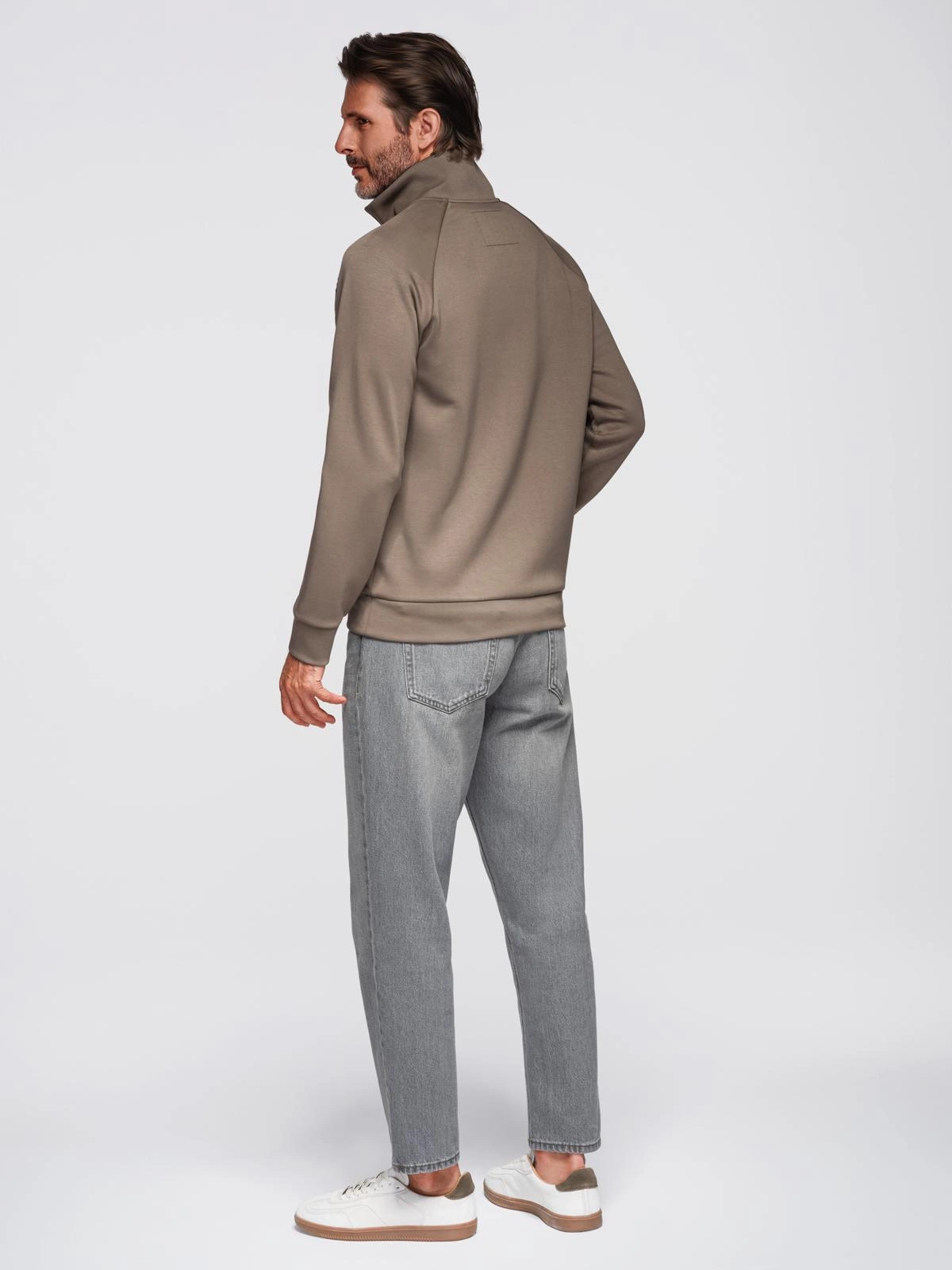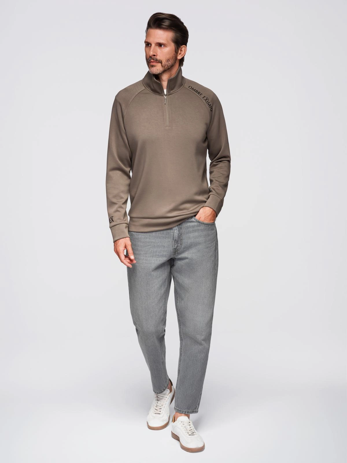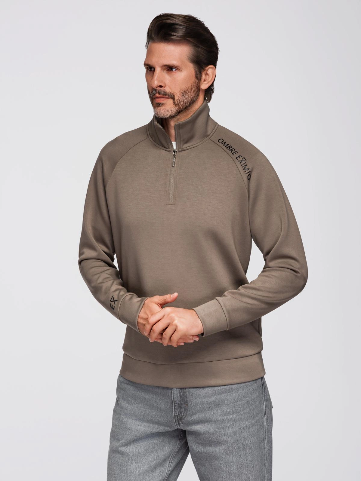 Hanorac pentru bărbați cu imprimeu contrastant și guler înalt - gri-maro V3 OM-SSZP-0211