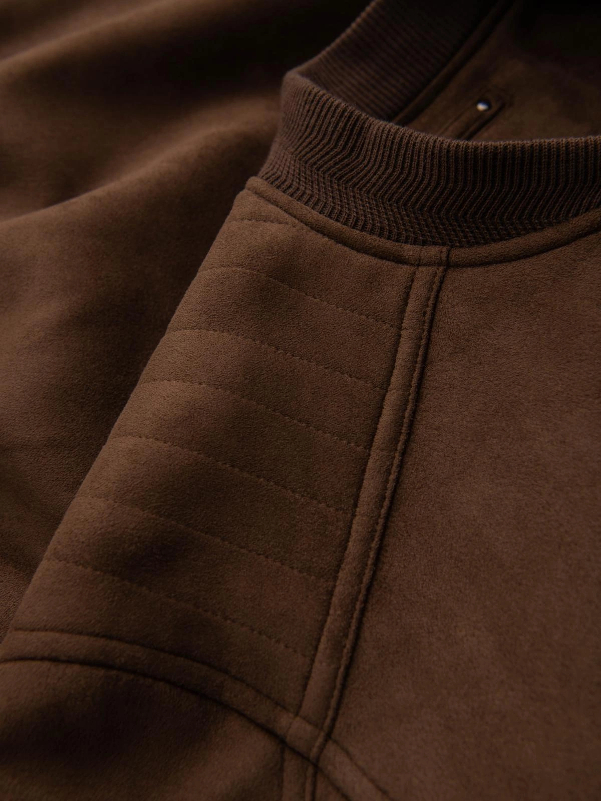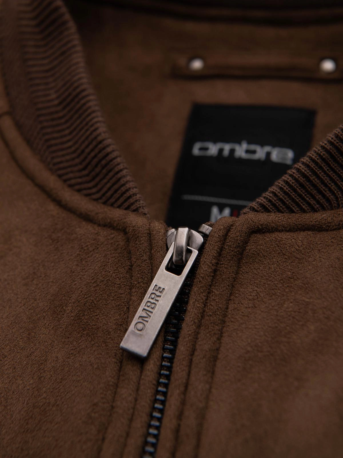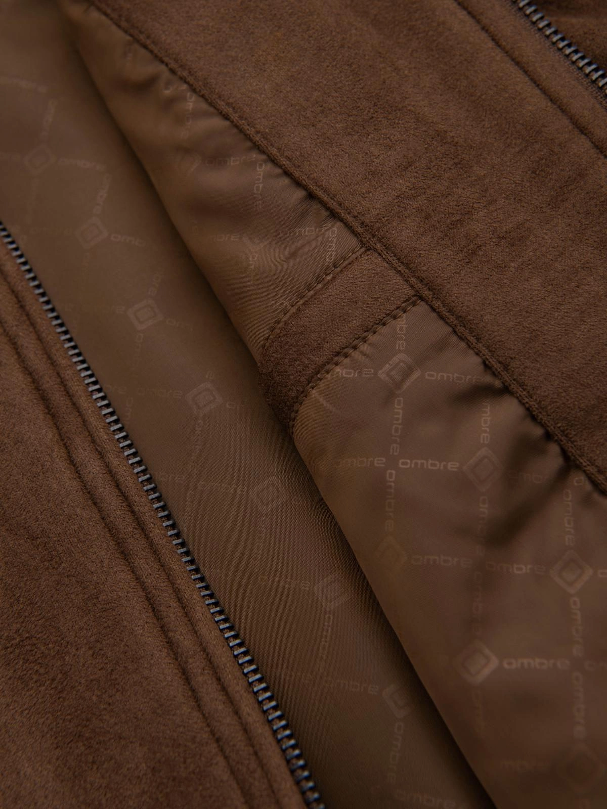 Jachetă bărbătească din imitație de piele cu tivul cu nervuri - maro închis V1 OM-JAFL-0109