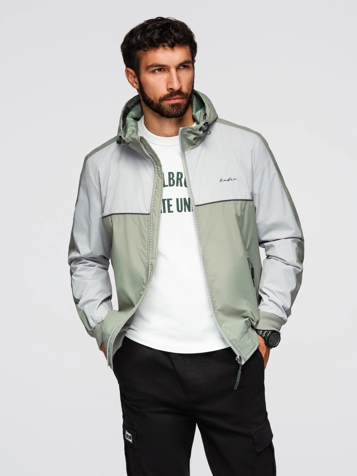 Jachetă cu glugă pentru bărbați - gri măsliniu V3 OM-JANP-0228