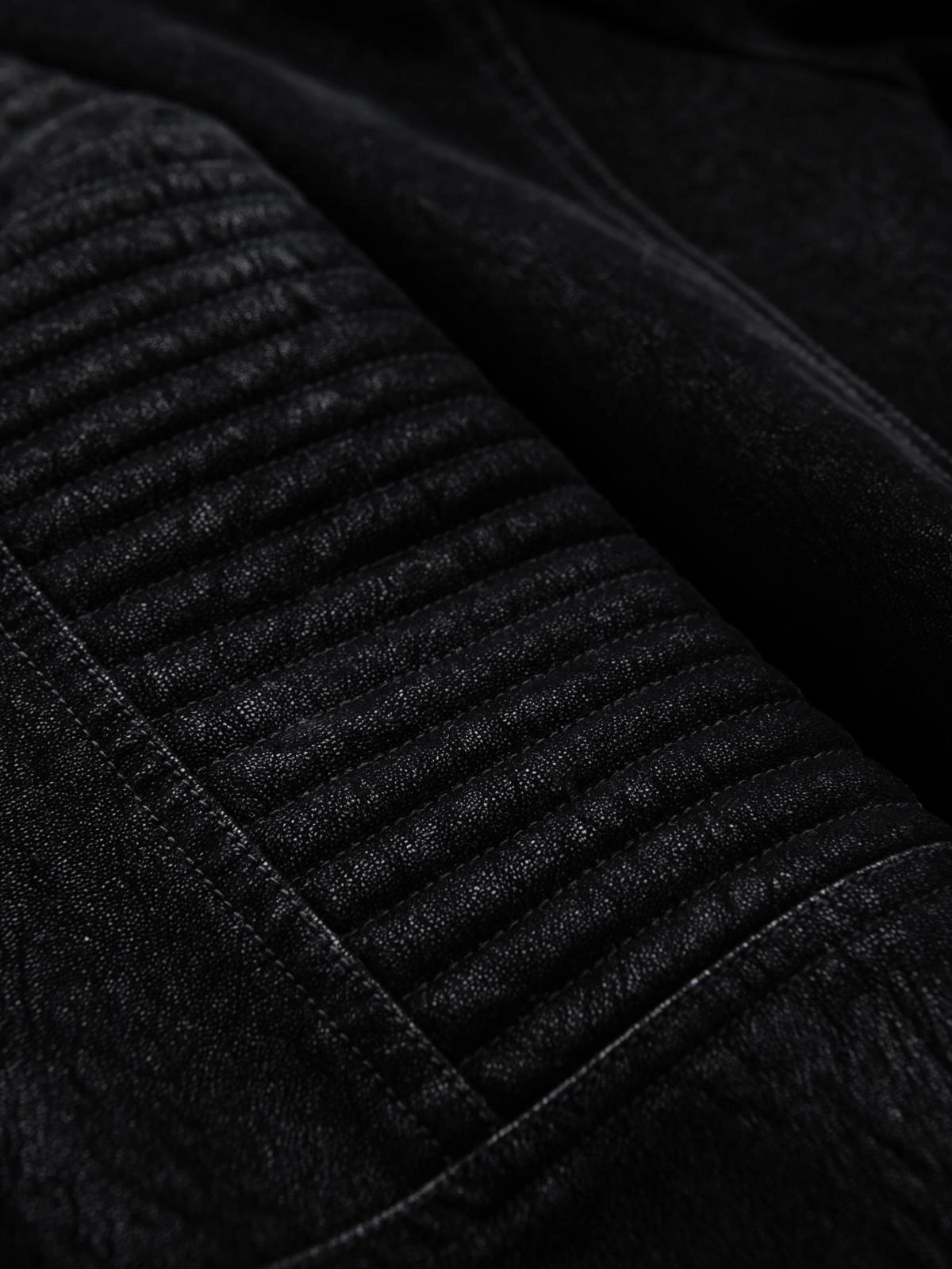 Jacheta din piele ecologică inspirată de motocicletă va fi pe placul bărbaților care pun accent pe individualitate în modă. Materialul exterior cu textura sa caracteristică este plăcut la atingere și ușor de întreținut. Caracterul funcțional este dat de numărul mare de buzunare practice. Fermoarele lucioase și cusăturile patchwork conferă jachetei un aer rocker.