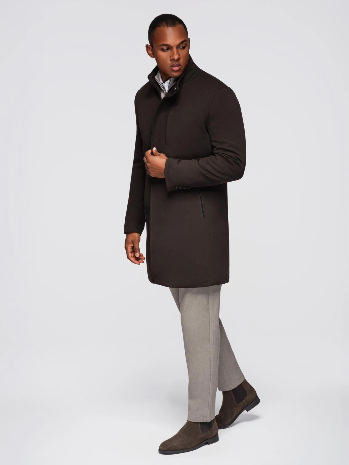 Palton structurat pentru bărbați cu guler înalt - maro închis V5 OM-COWC-0136