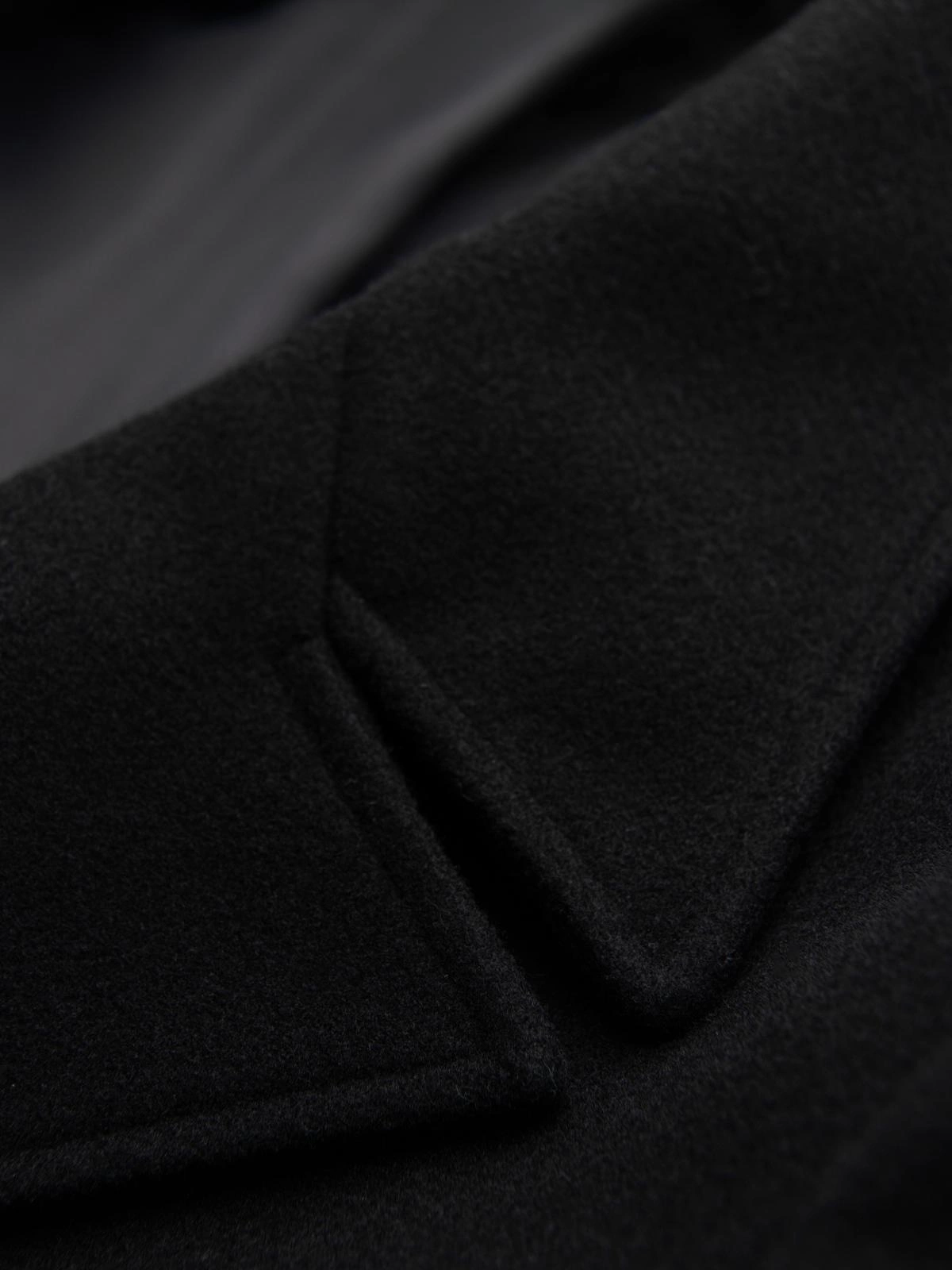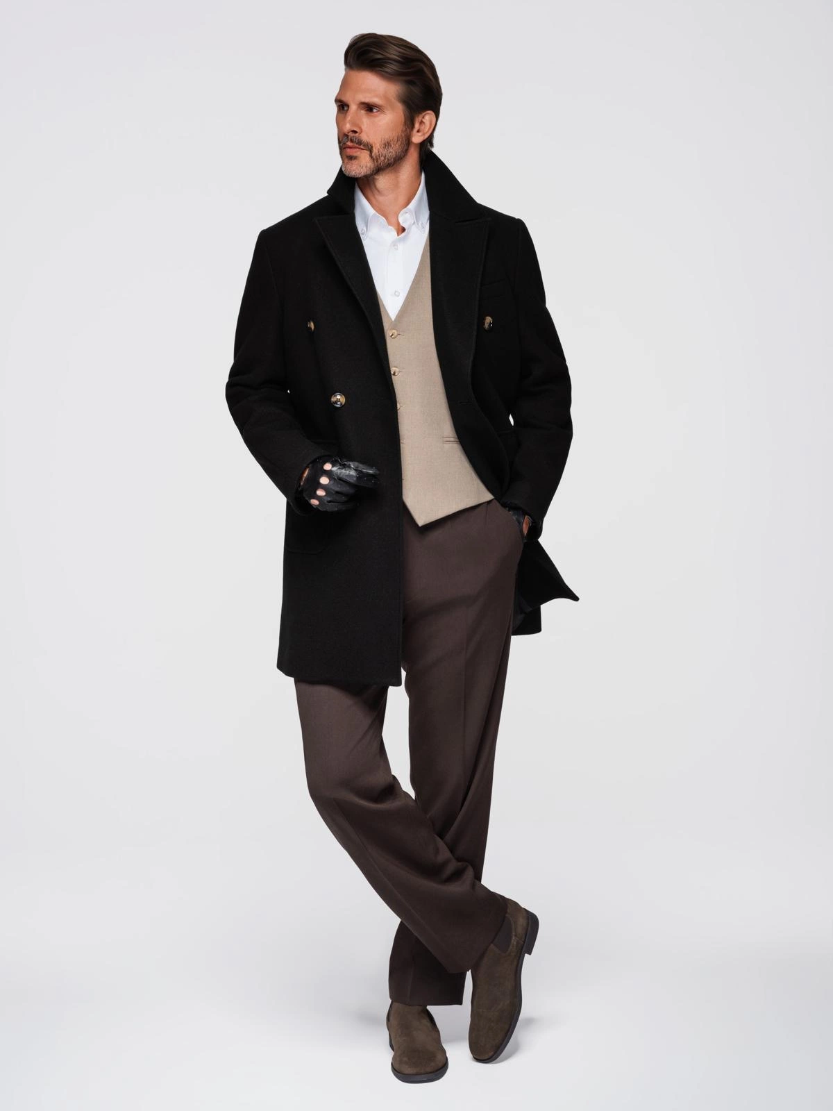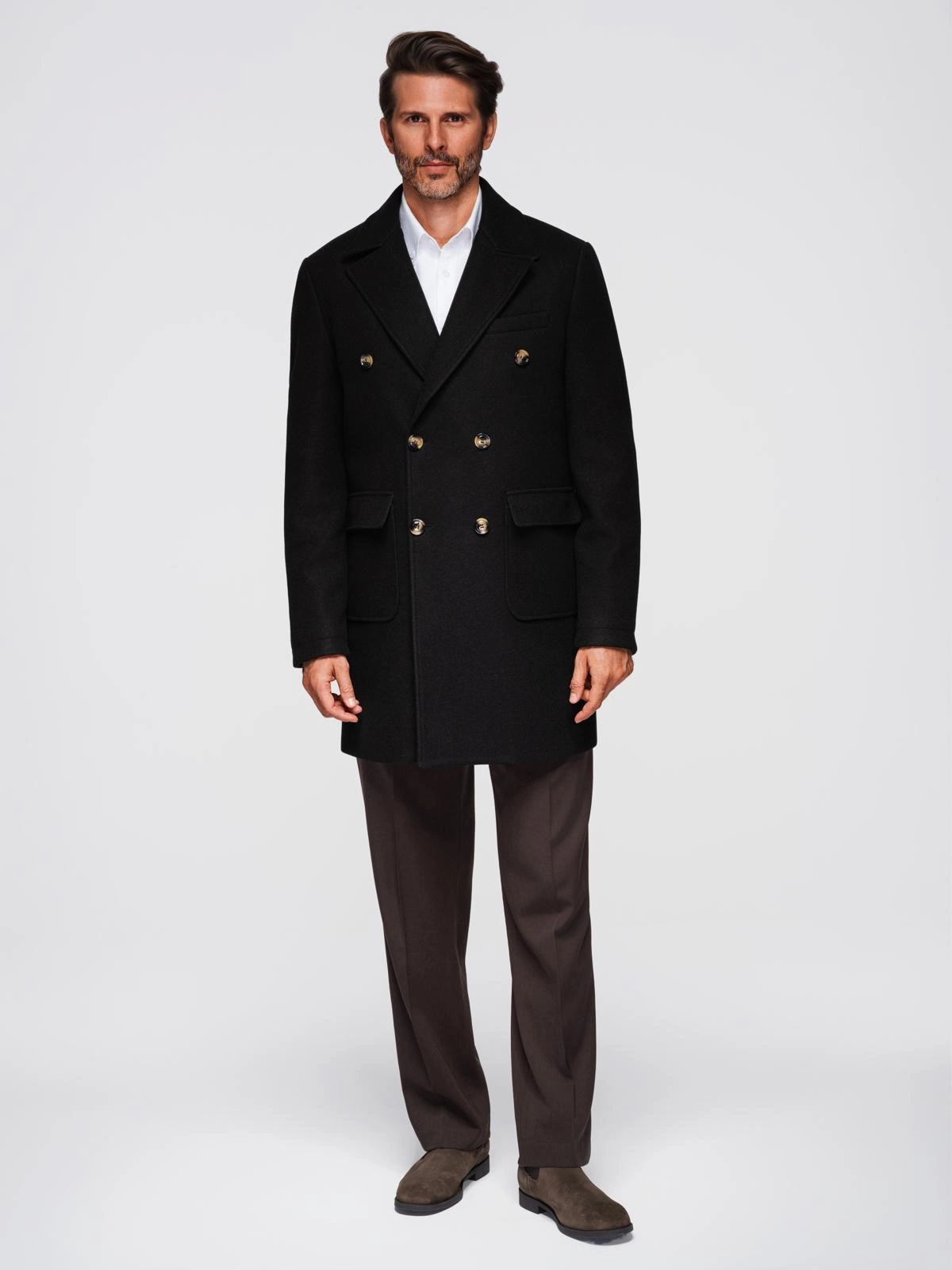 Palton bărbătesc dublu pieptănat cu nasturi decorativi - negru V2 OM-COWC-0137
