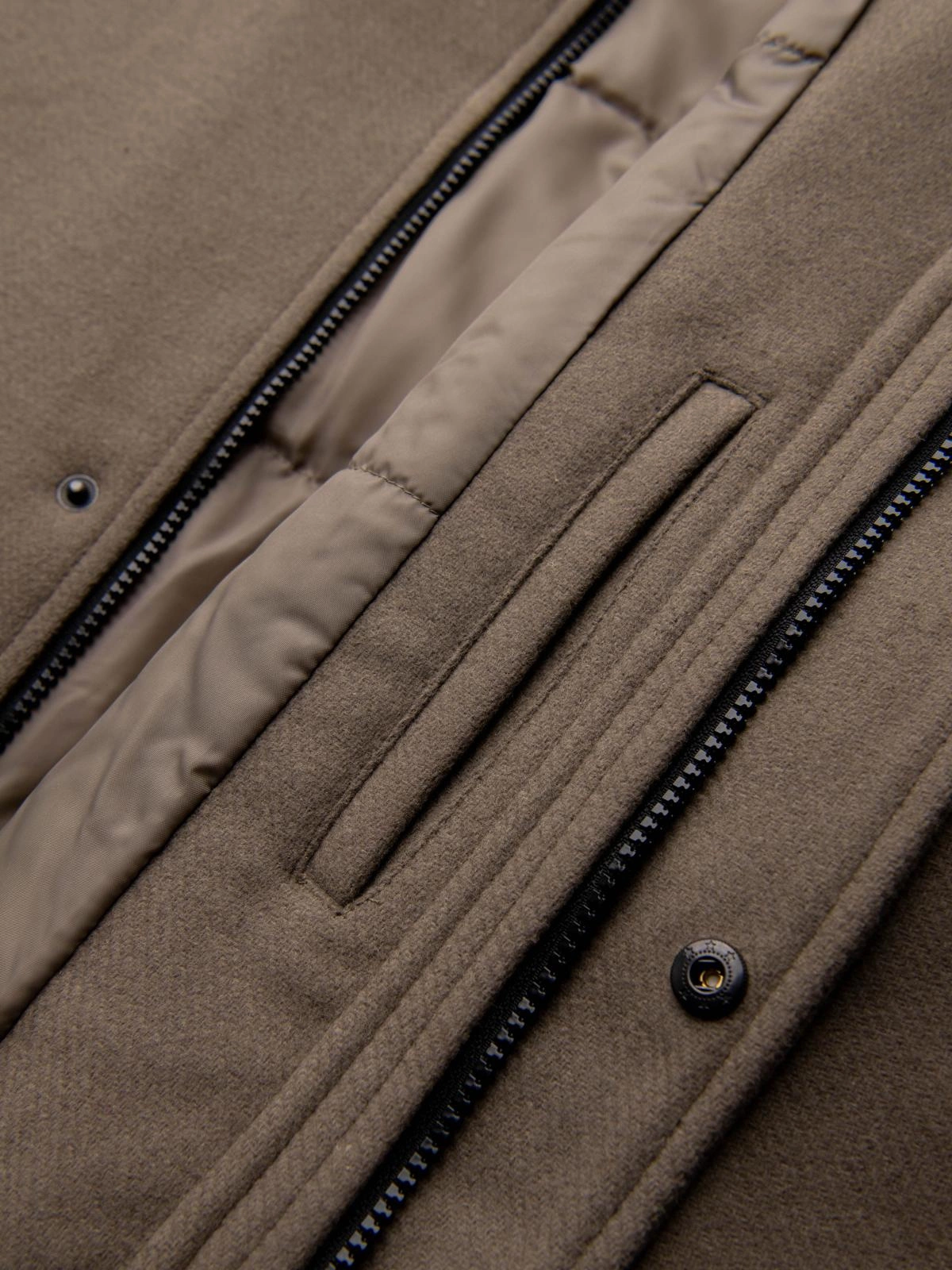 Palton parka din lână pentru bărbați cu glugă - kaki V2 OM-COWC-0132