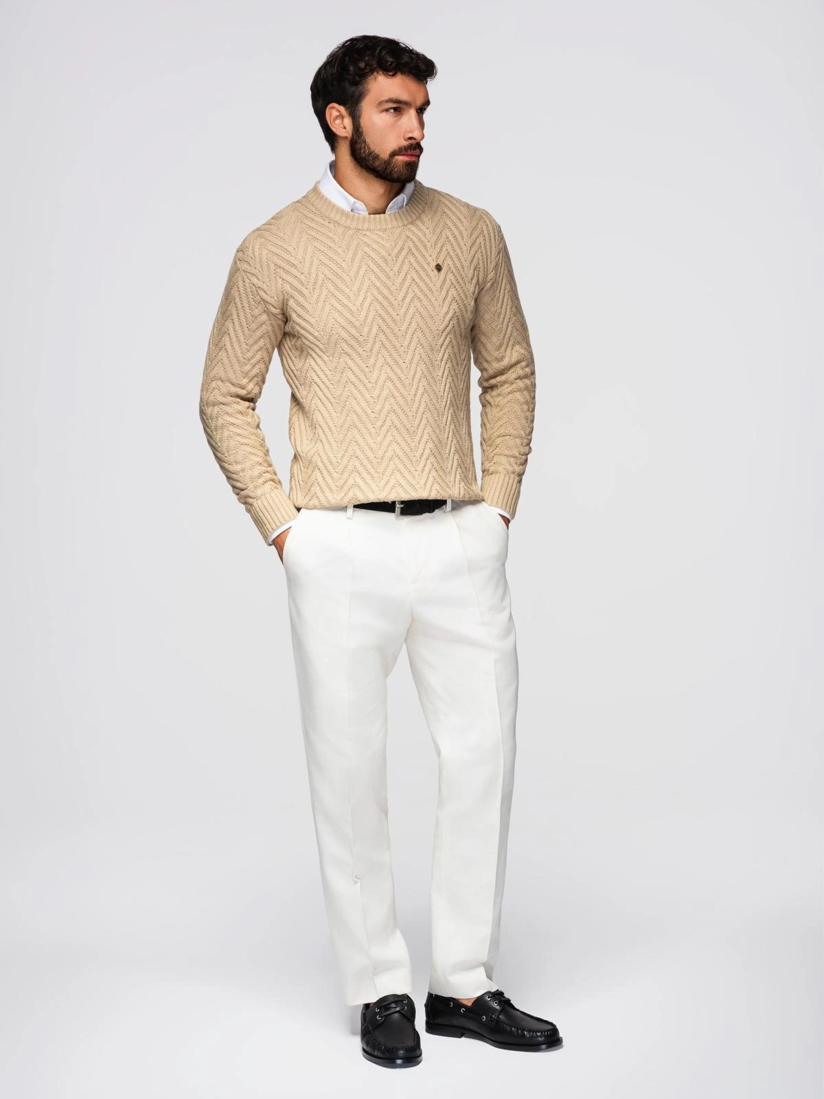 Pulover tricotat zig-zag pentru bărbați - nisip V1 OM-SWSW-0147