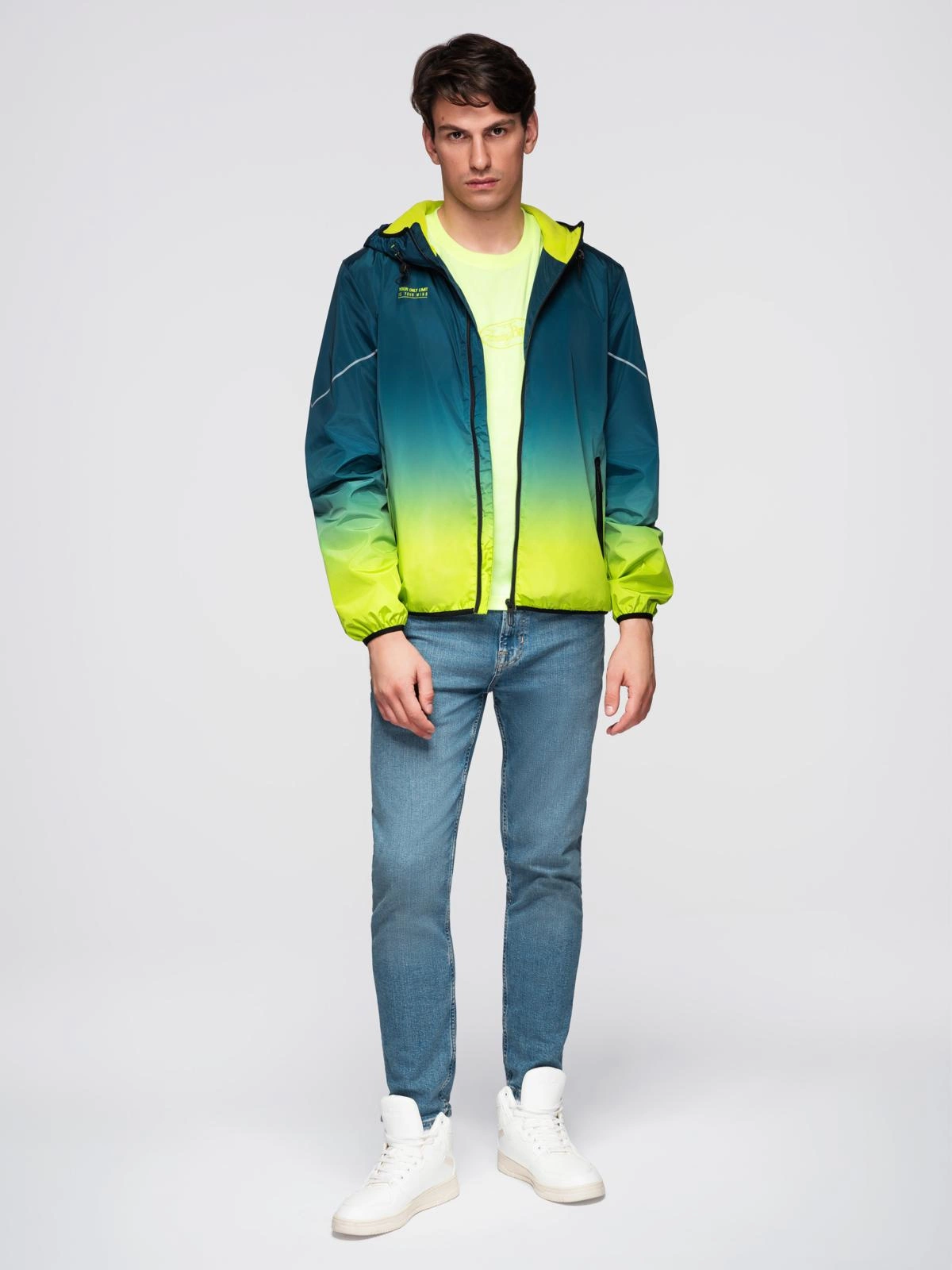 Jachetă sport ombre pentru bărbați cu reflectorizante și căptușeală din fleece - turcoaz și verde lime V1 C641