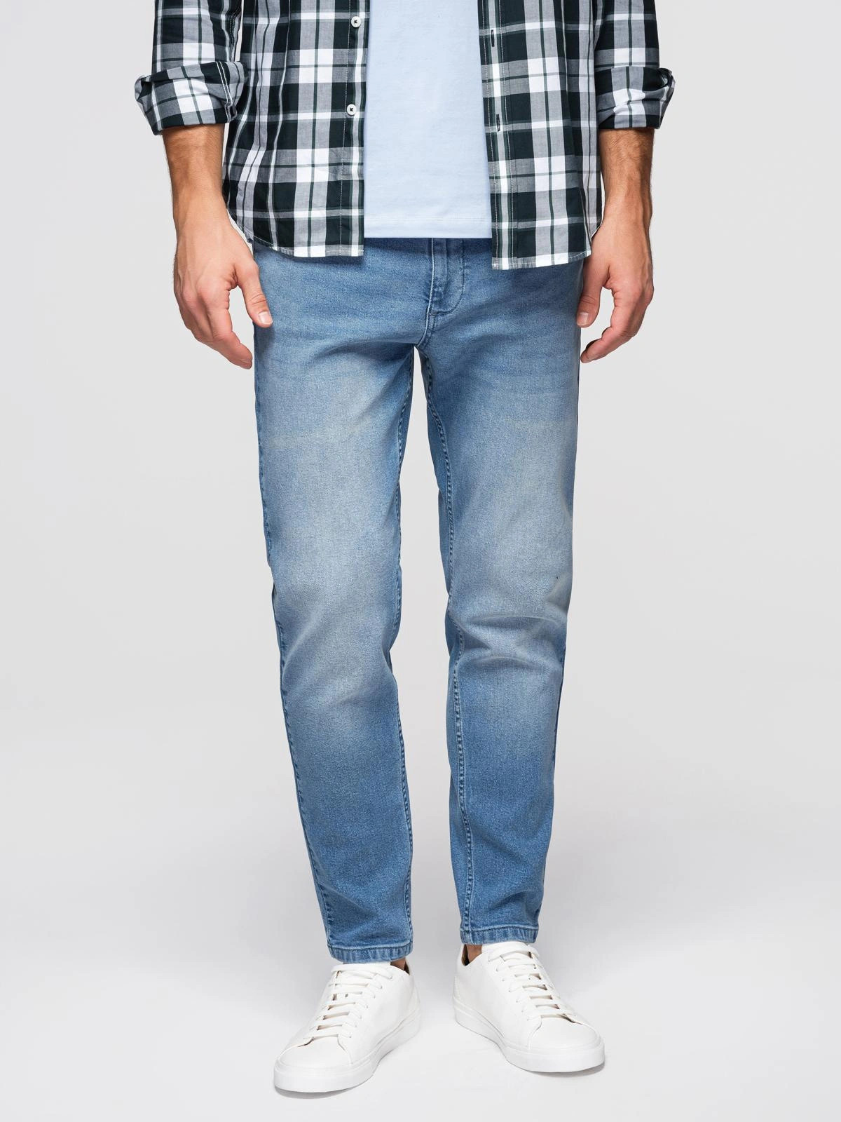 Un model pentru bărbații cărora le place o linie ușor conică a picioarelor. Funcționează bine cu stilul urban de zi cu zi - cu un tricou și adidași la sfârșit de săptămână sau cu un pulover ușor și mocasini pentru un look casual elegant. Acești pantaloni din denim sunt ușor de asortat cu bej, alb și navy, așa că îi poți asorta cu ușurință cu cea mai mare parte a garderobei tale. Sunt o alegere confortabilă pentru locul de muncă fără dress code, întâlniri după program și ieșiri când confortul și versatilitatea contează.