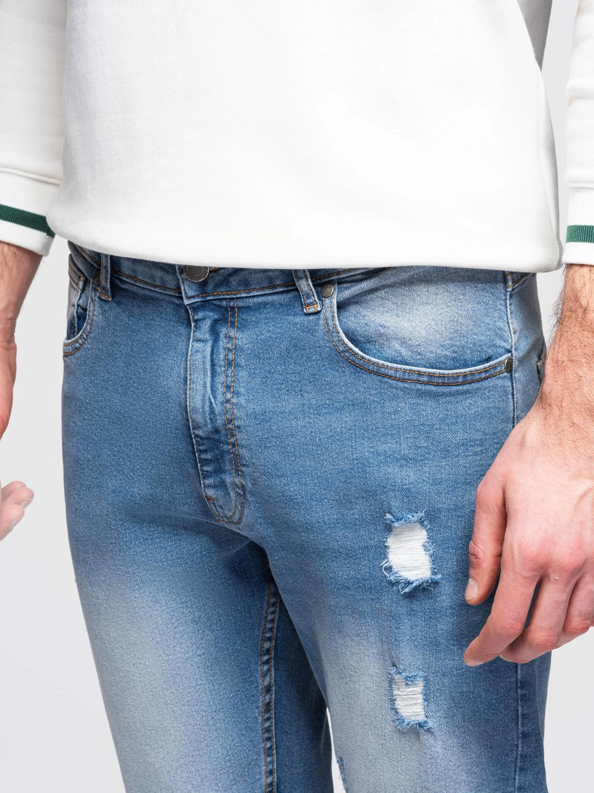 Pantaloni bărbătești REGULAR FIT din denim cu frecare - albastru deschis V1 OM-PADP-0254