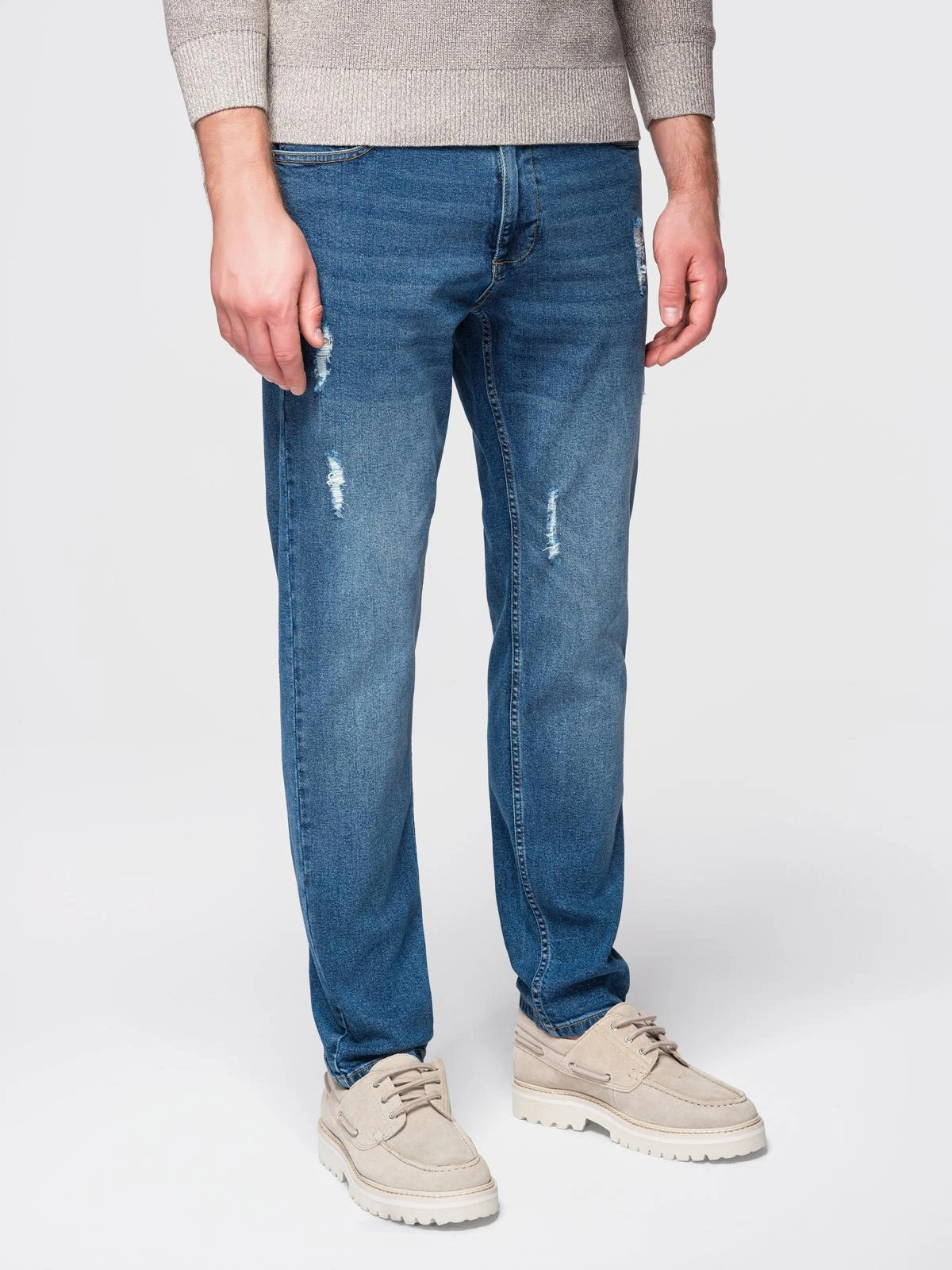 Pantaloni bărbătești SLIM FIT din denim cu frecare - albastru închis V2 OM-PADP-0255