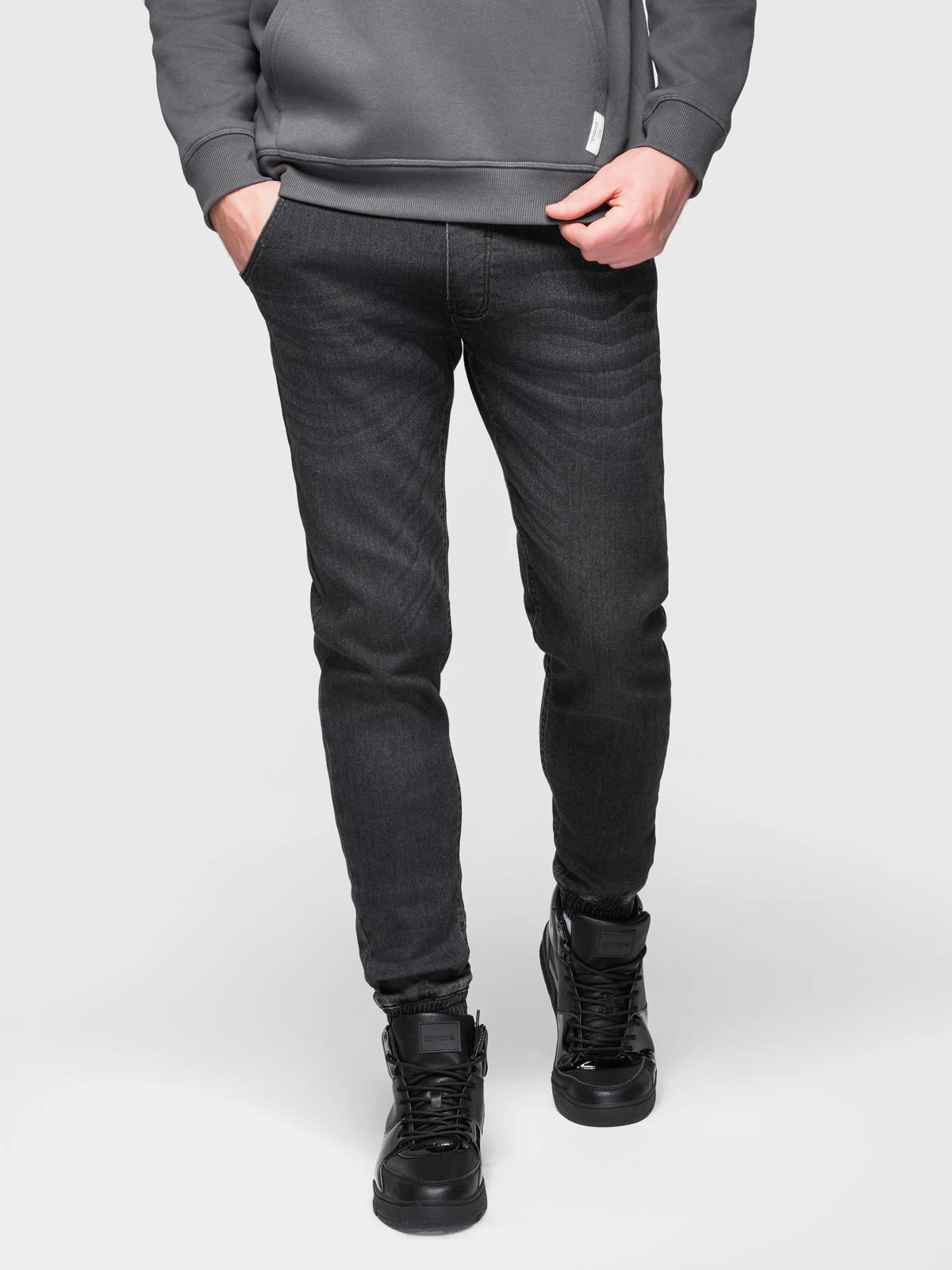 Pantaloni jogger din denim pentru bărbați cu cordon în talie - negru V4 OM-PADJ-0242