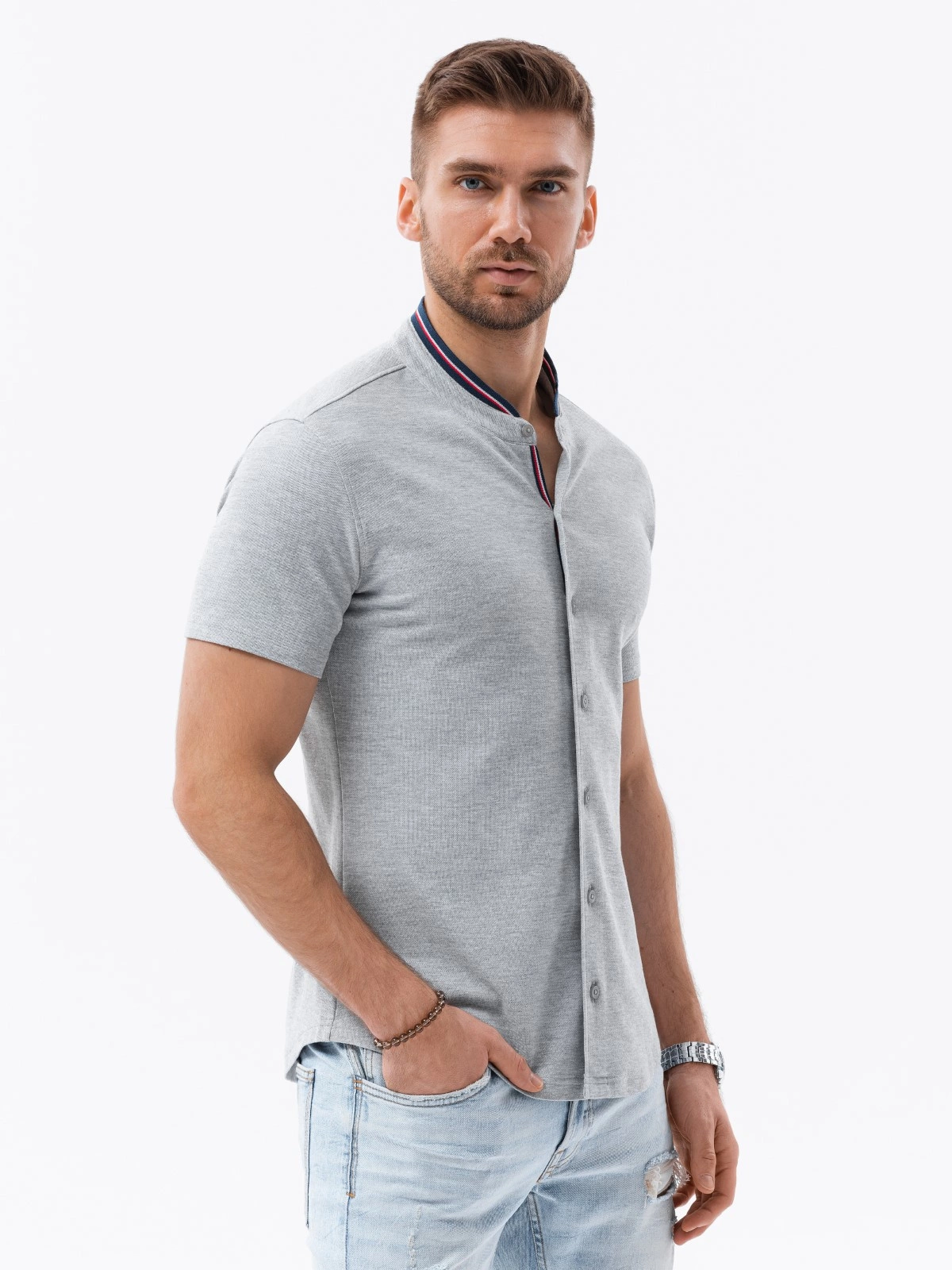Cămașă tricotată cu mânecă scurtă pentru bărbați - gri V5 K543
