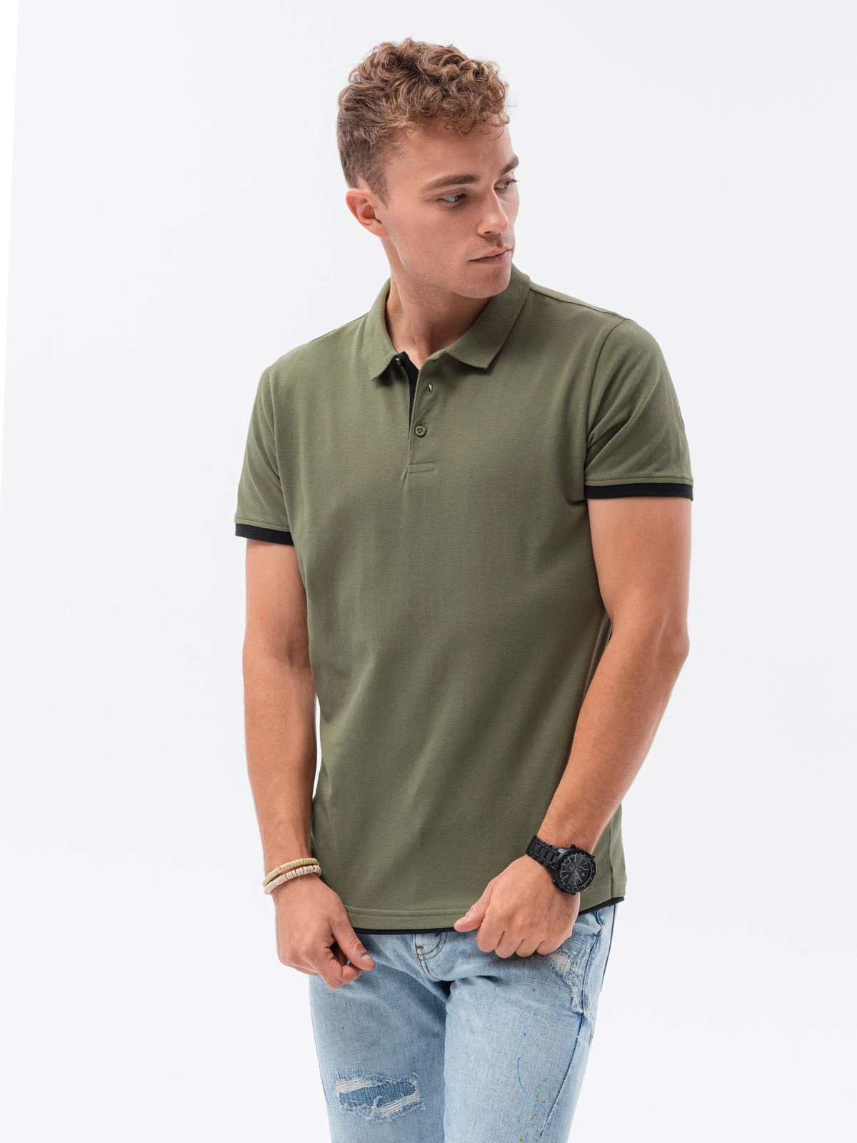 Bluza polo simpla barbati - masliniu S1382