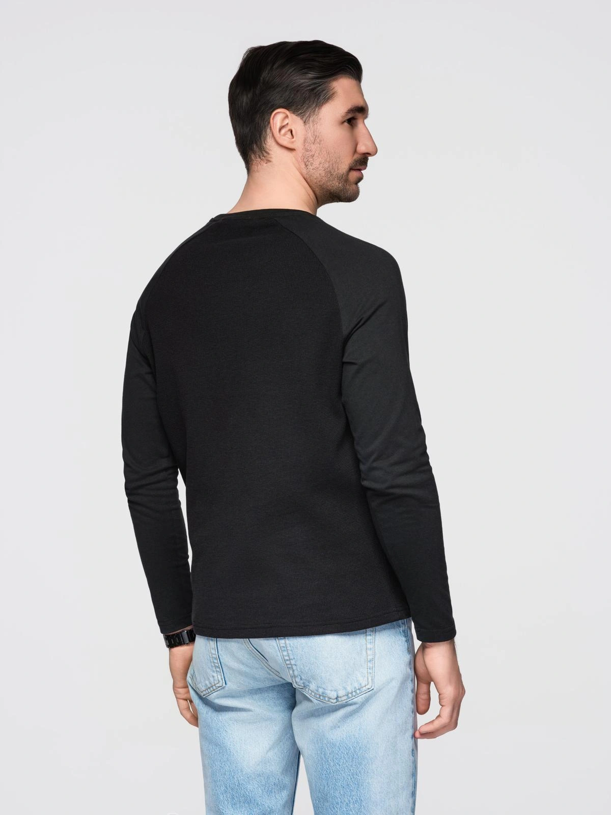 Pánske oblečenie s dlhým rukávom s vafľovou textúrou - čierna V4 OM-LSCL-0109