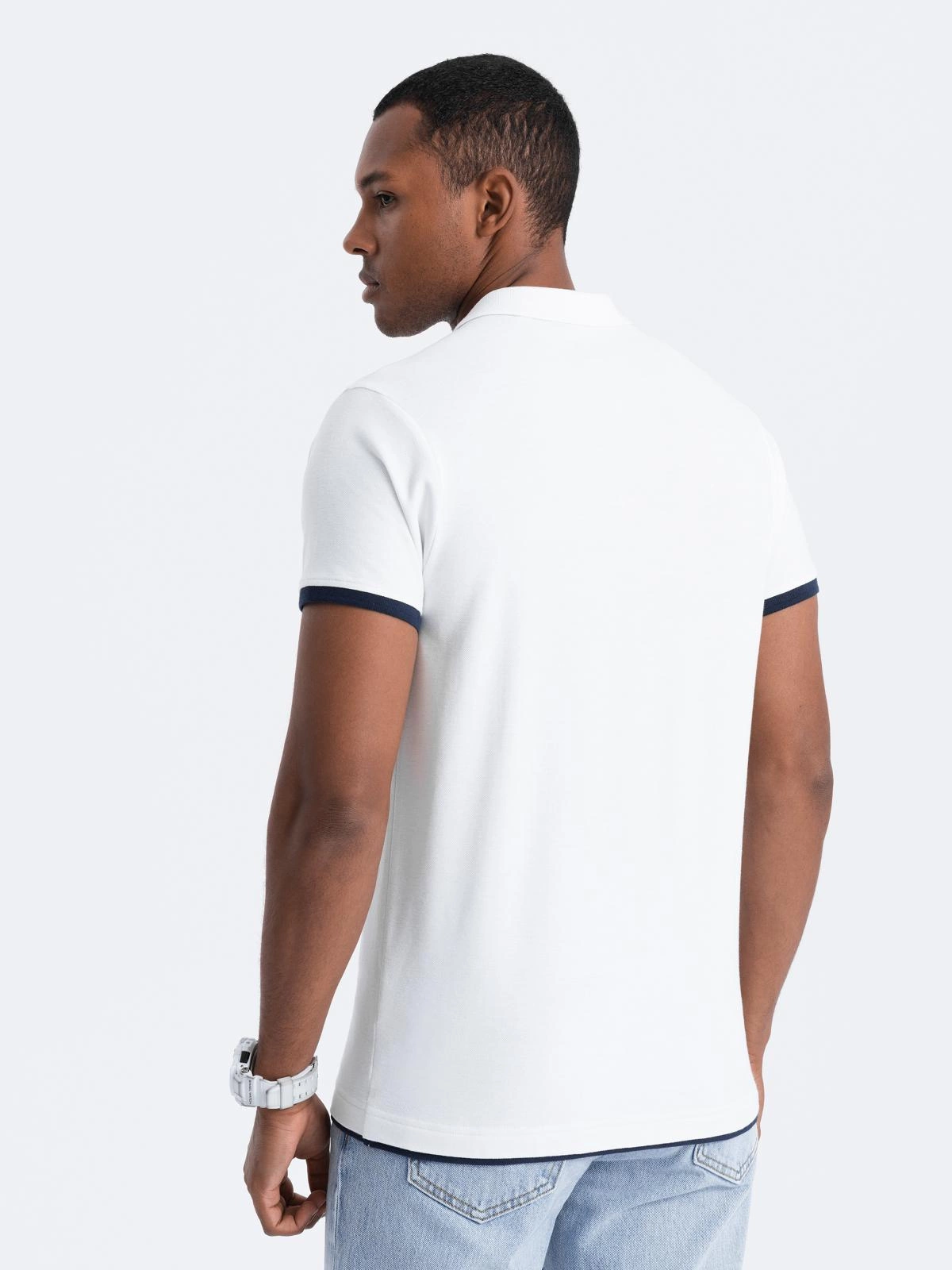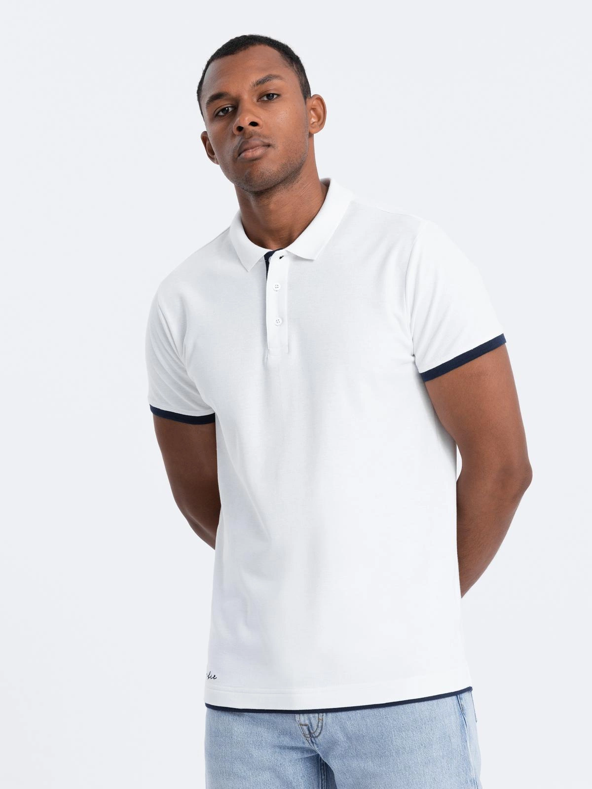 Pánske bavlnené polo tričko s kontrastným lemovaním - biele V1 OM-POSS-0113