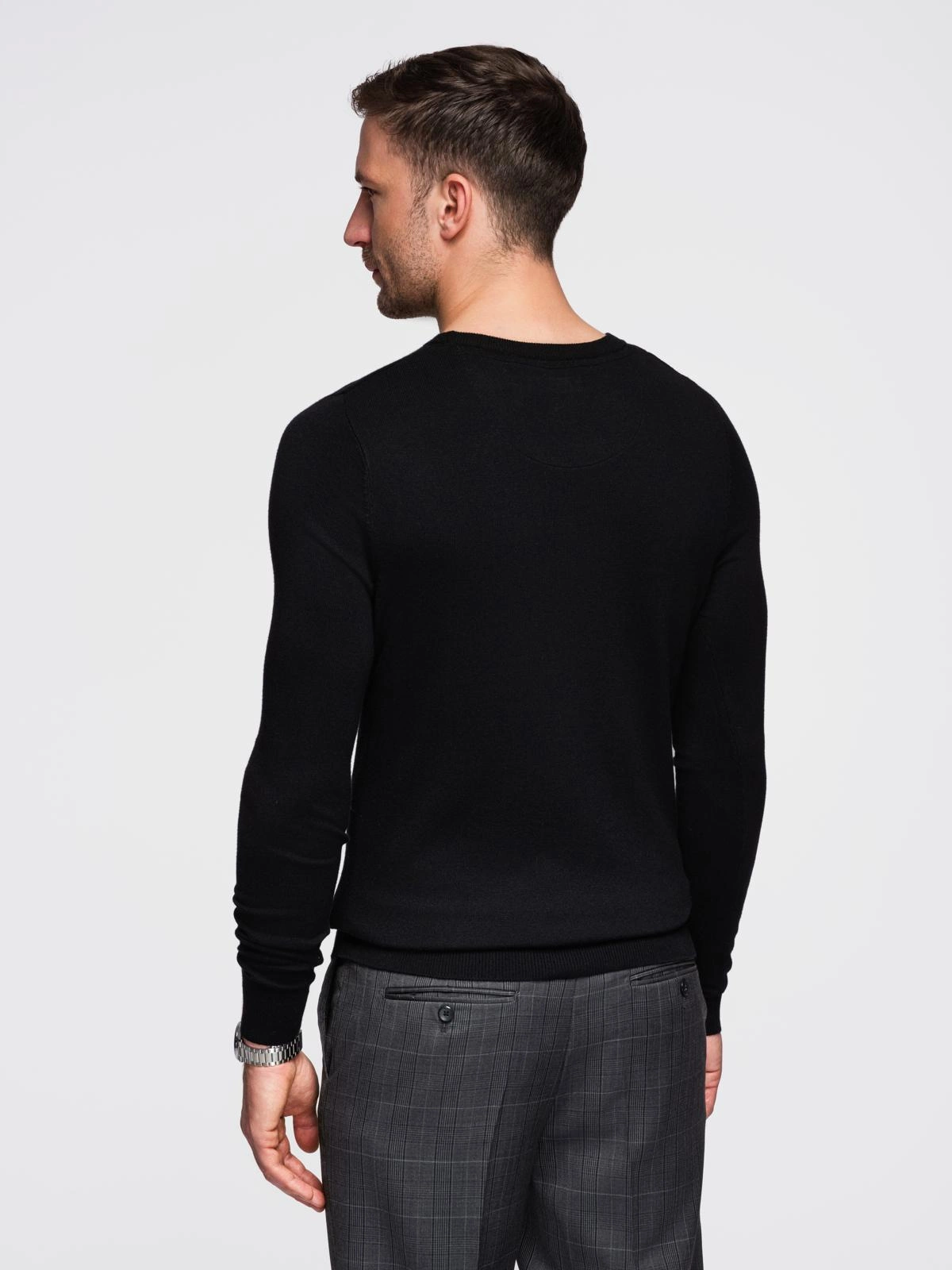 Pánsky klasický sveter s okrúhlym výstrihom - čierny V2 OM-SWBS-0106