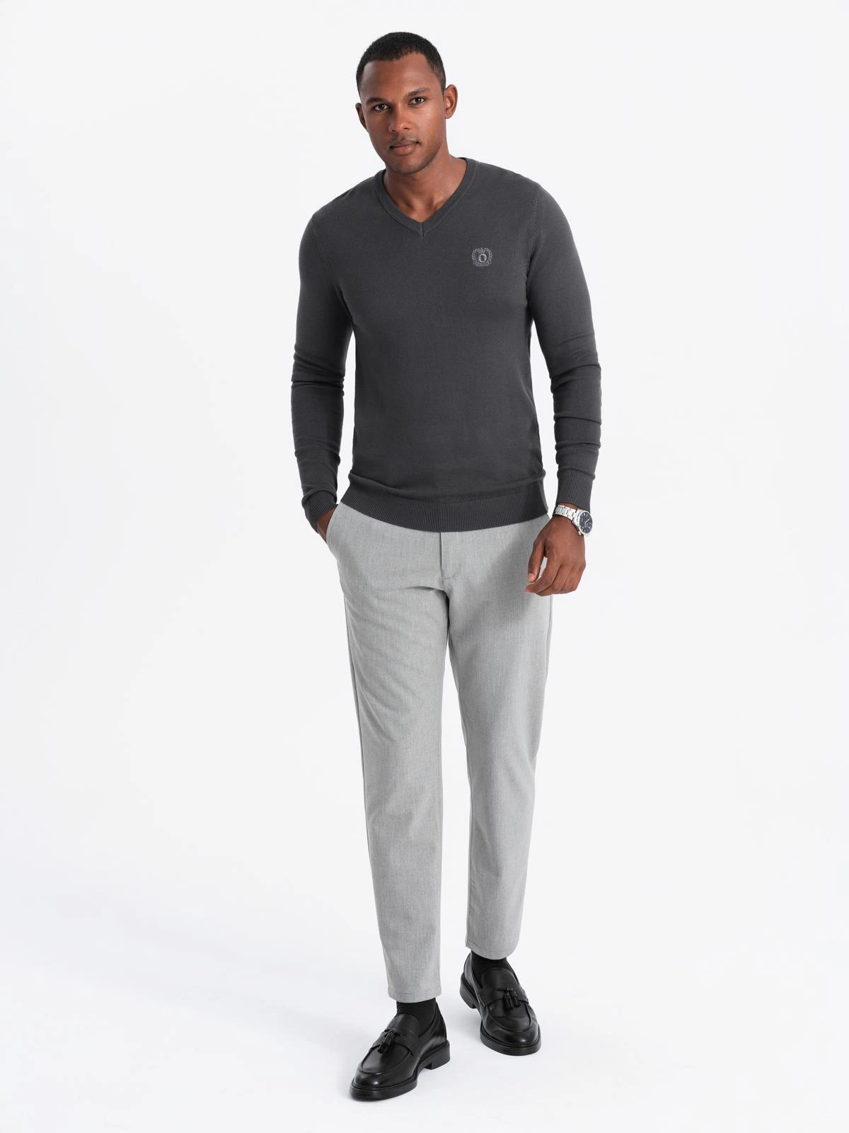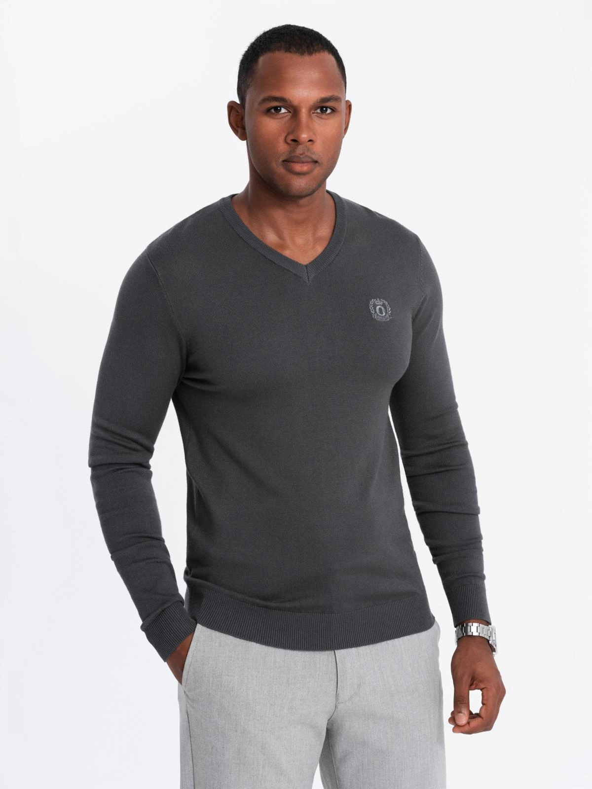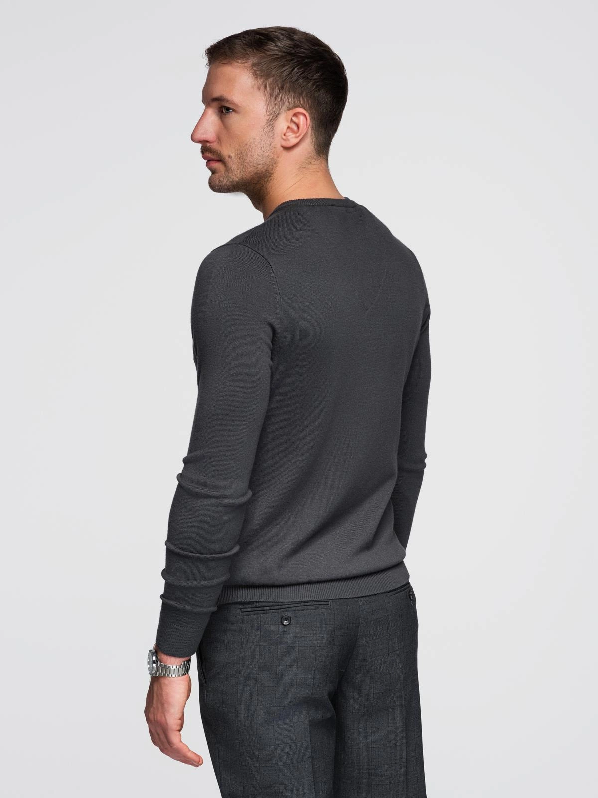 Elegantný pánsky sveter s výstrihom - grafitový V17 OM-SWBS-0107