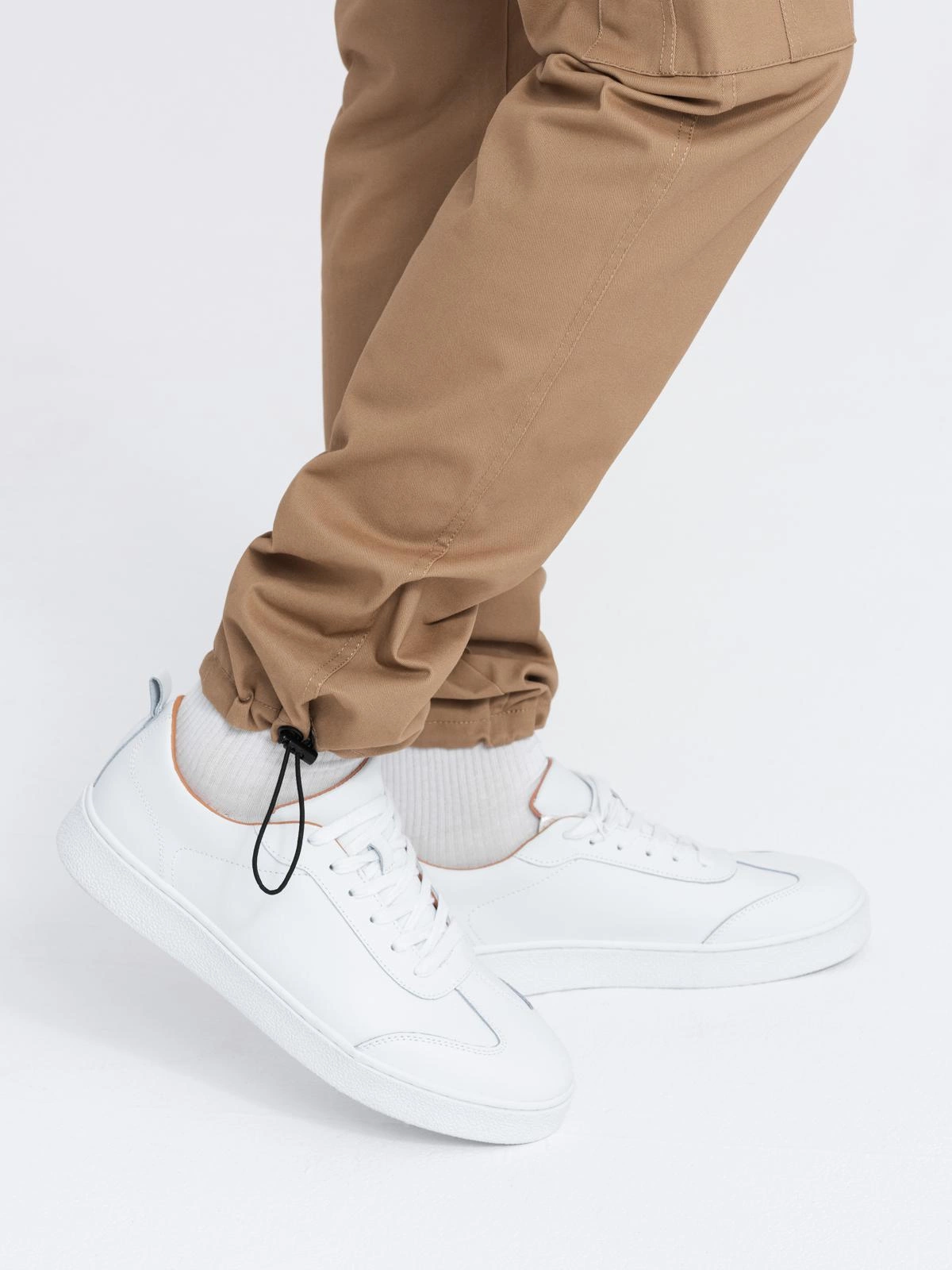 Pánske nohavice s cargo vreckami a lemom nohavíc - teplá hnedá V2 OM-PACG-0189