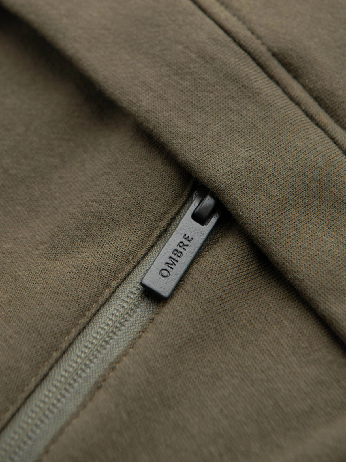 Pánske tepláky s prešívaním a zipsom na nohaviciach - olivové V3 OM-PASK-0147