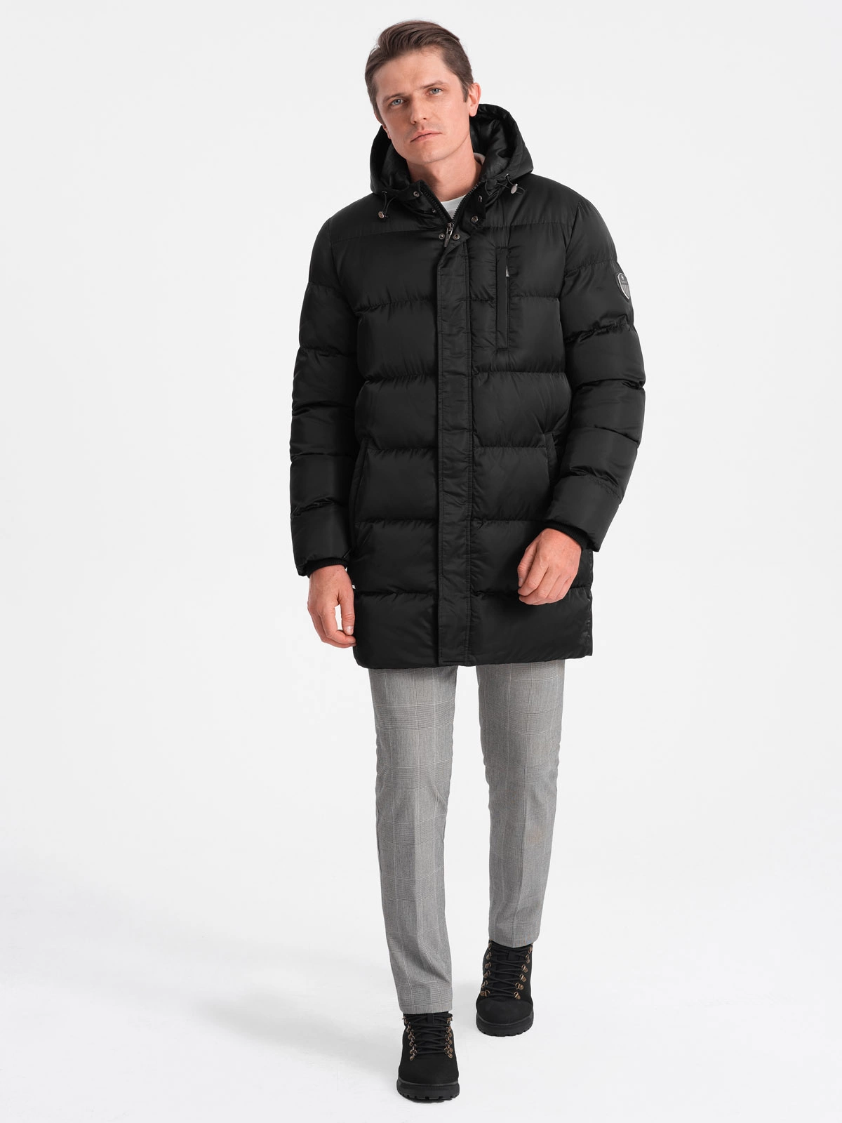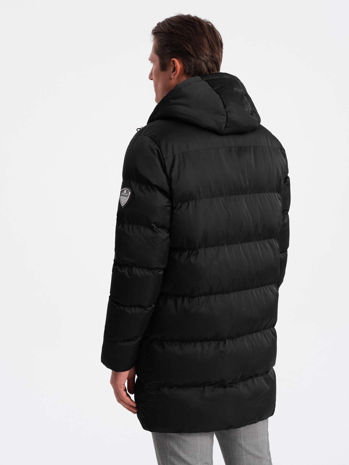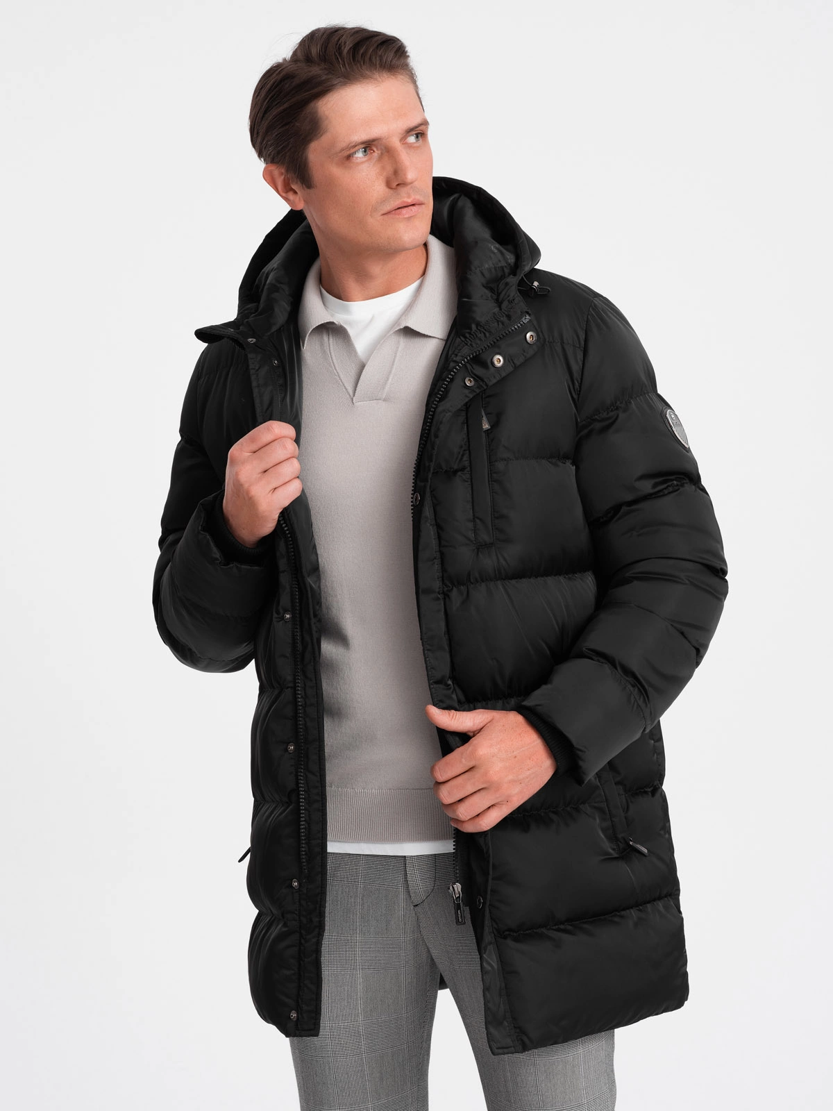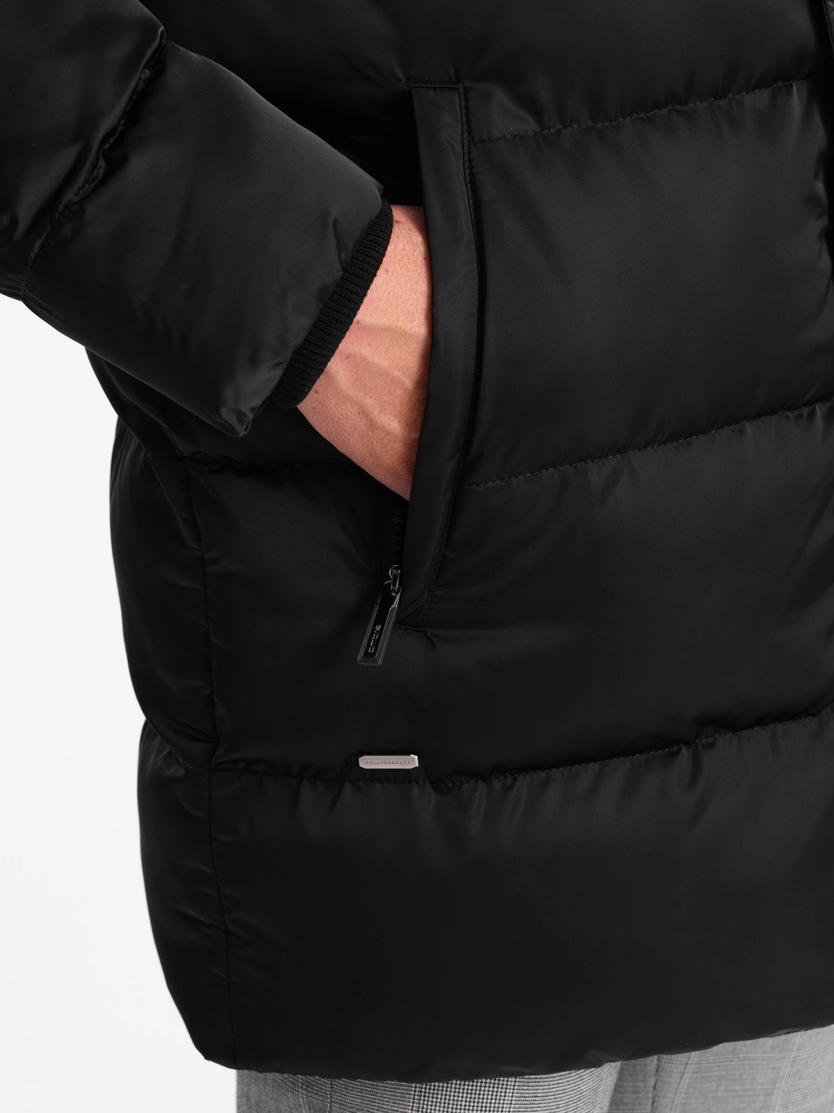 Pánska dlhá zimná prešívaná bunda so saténovým povrchom - čierna V3 OM-JALJ-0147