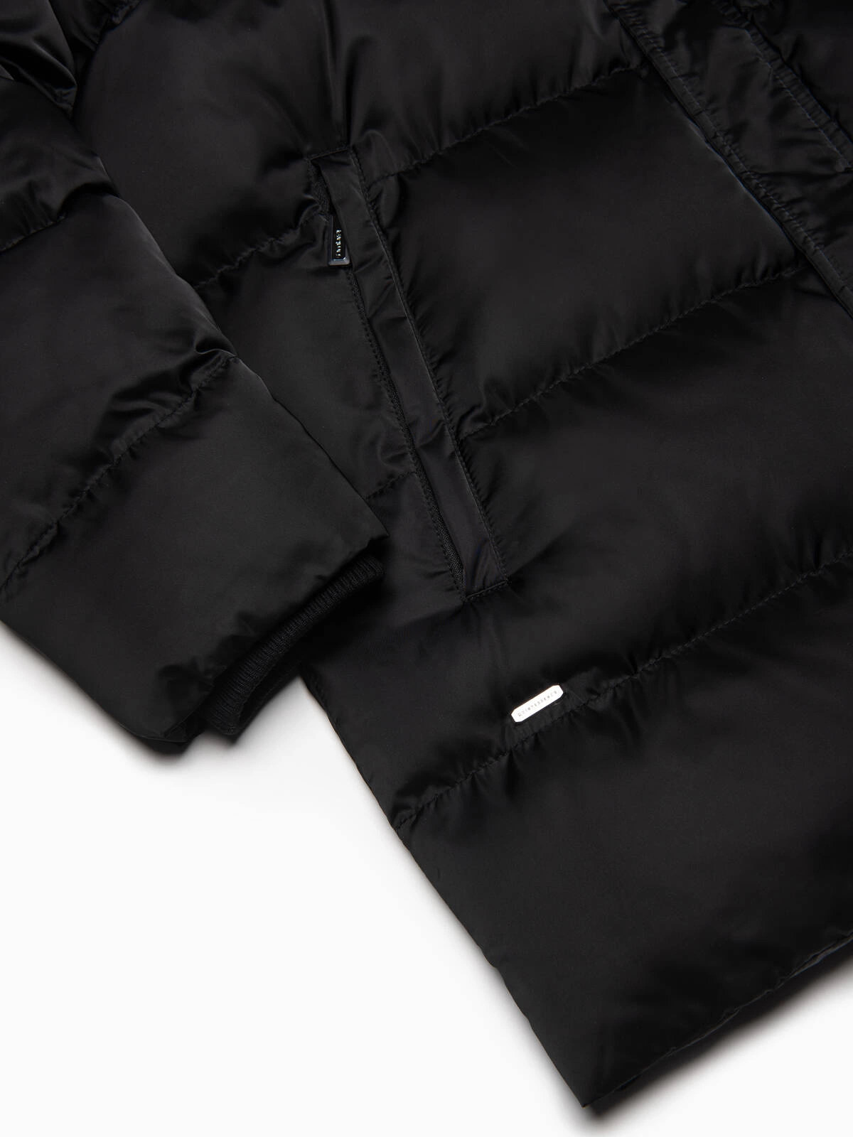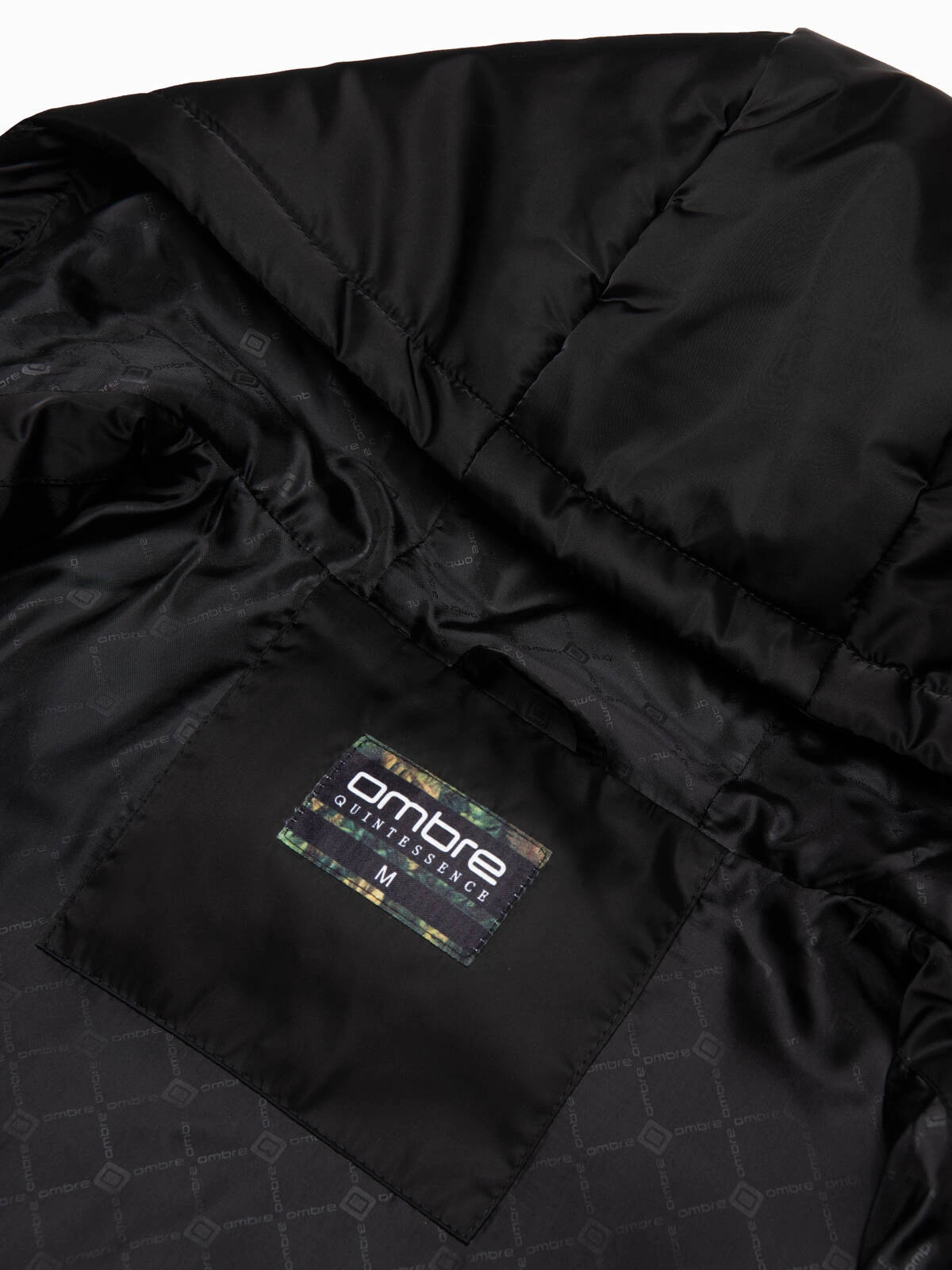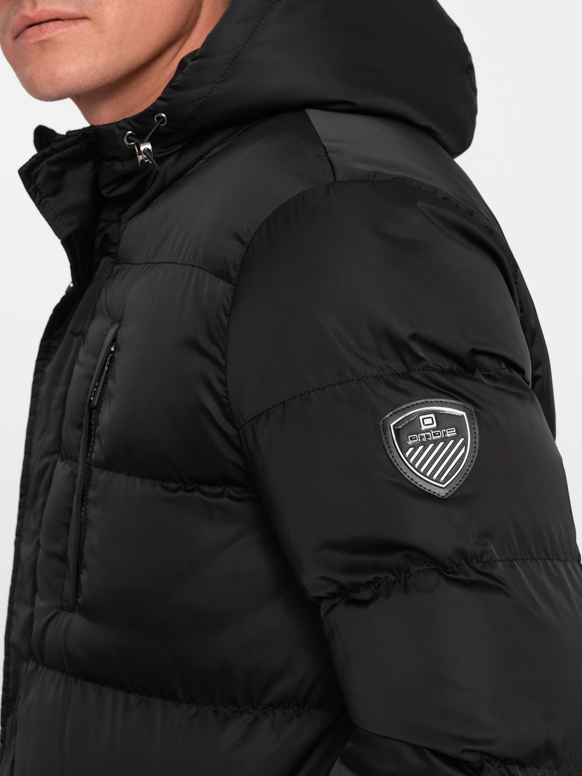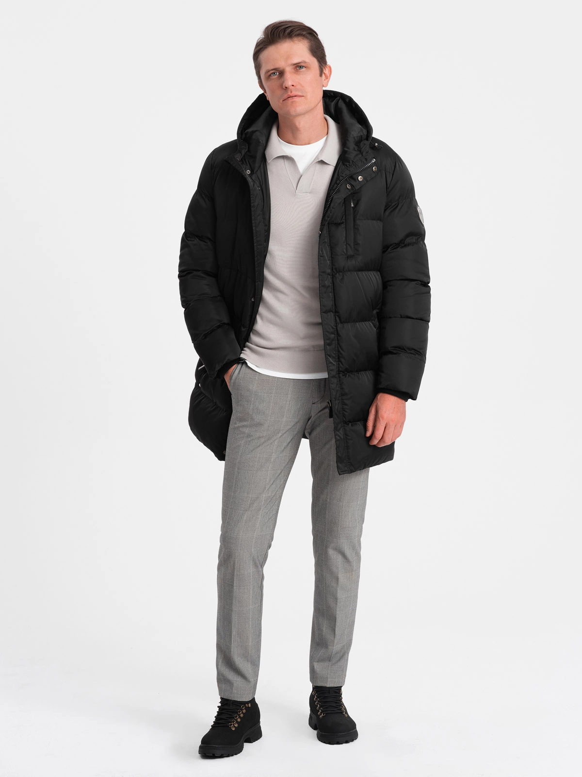 Pánska dlhá zimná prešívaná bunda so saténovým povrchom - čierna V3 OM-JALJ-0147