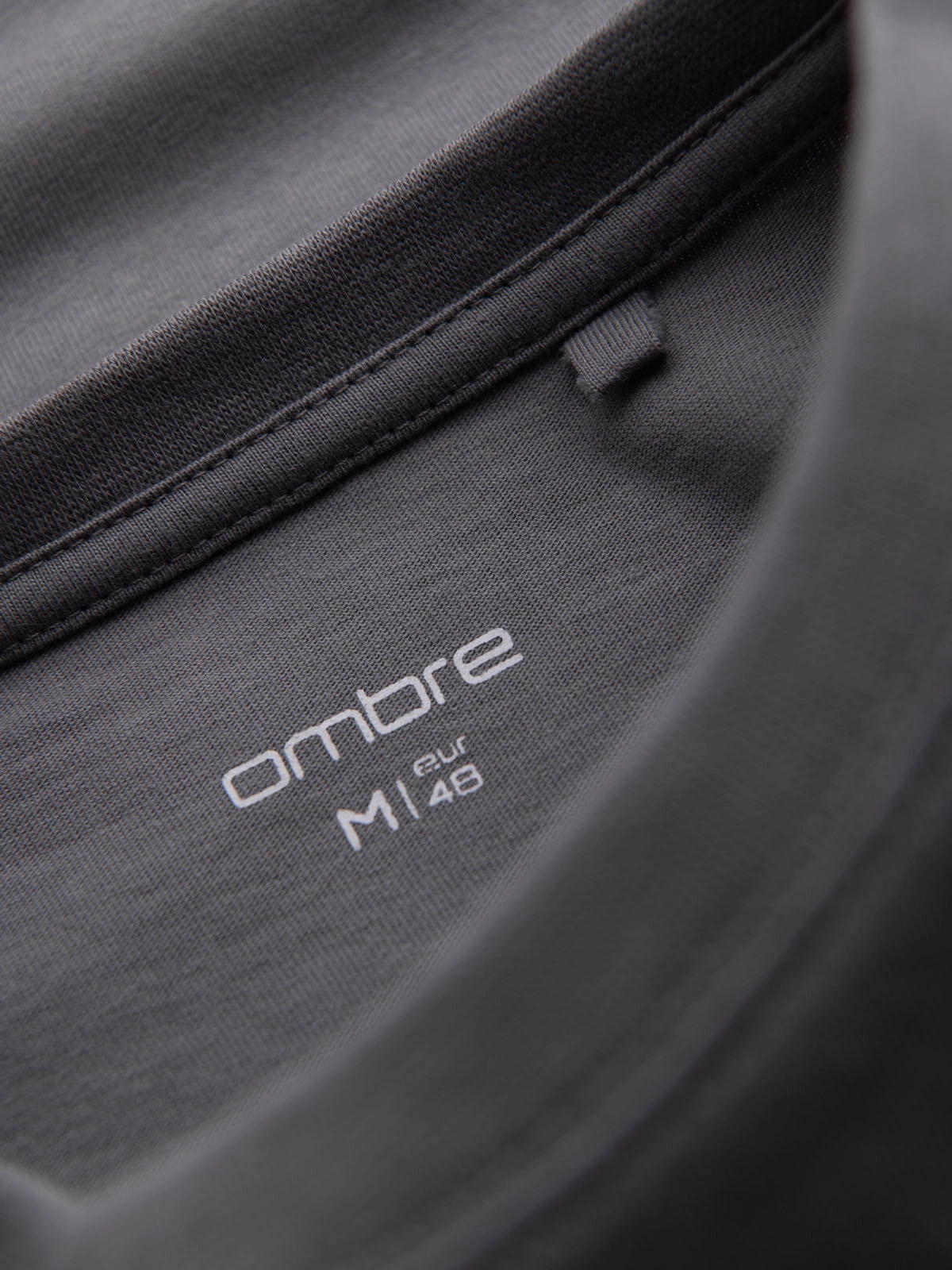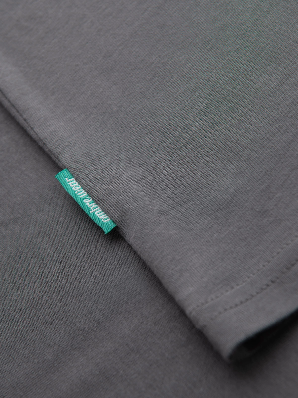 Pánske bavlnené tričko so zelenou nášivkou na hrudi - sivé V1 OM-TSCT-0151