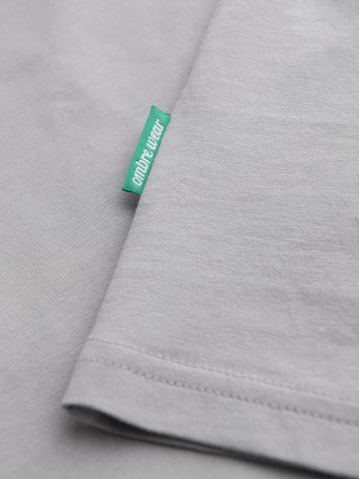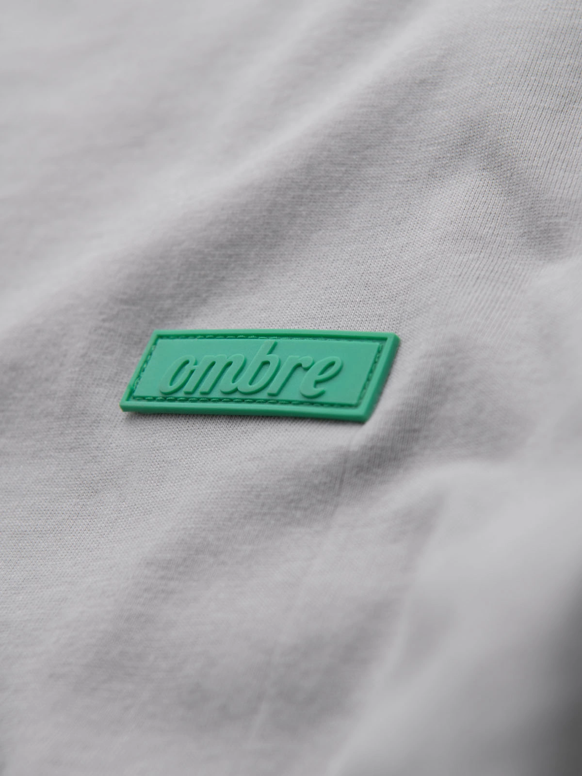 Pánske bavlnené tričko so zelenou nášivkou na hrudi - svetlosivé V2 OM-TSCT-0151