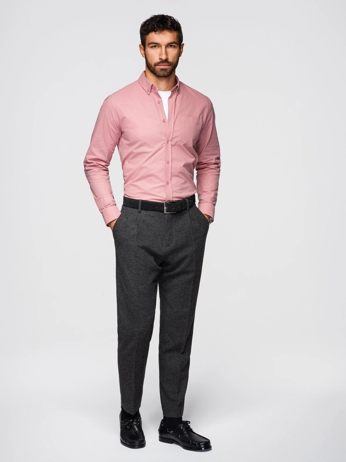 Pánske bavlnené tričko REGULAR FIT s vreckom - ružové V3 OM-SHOS-0153