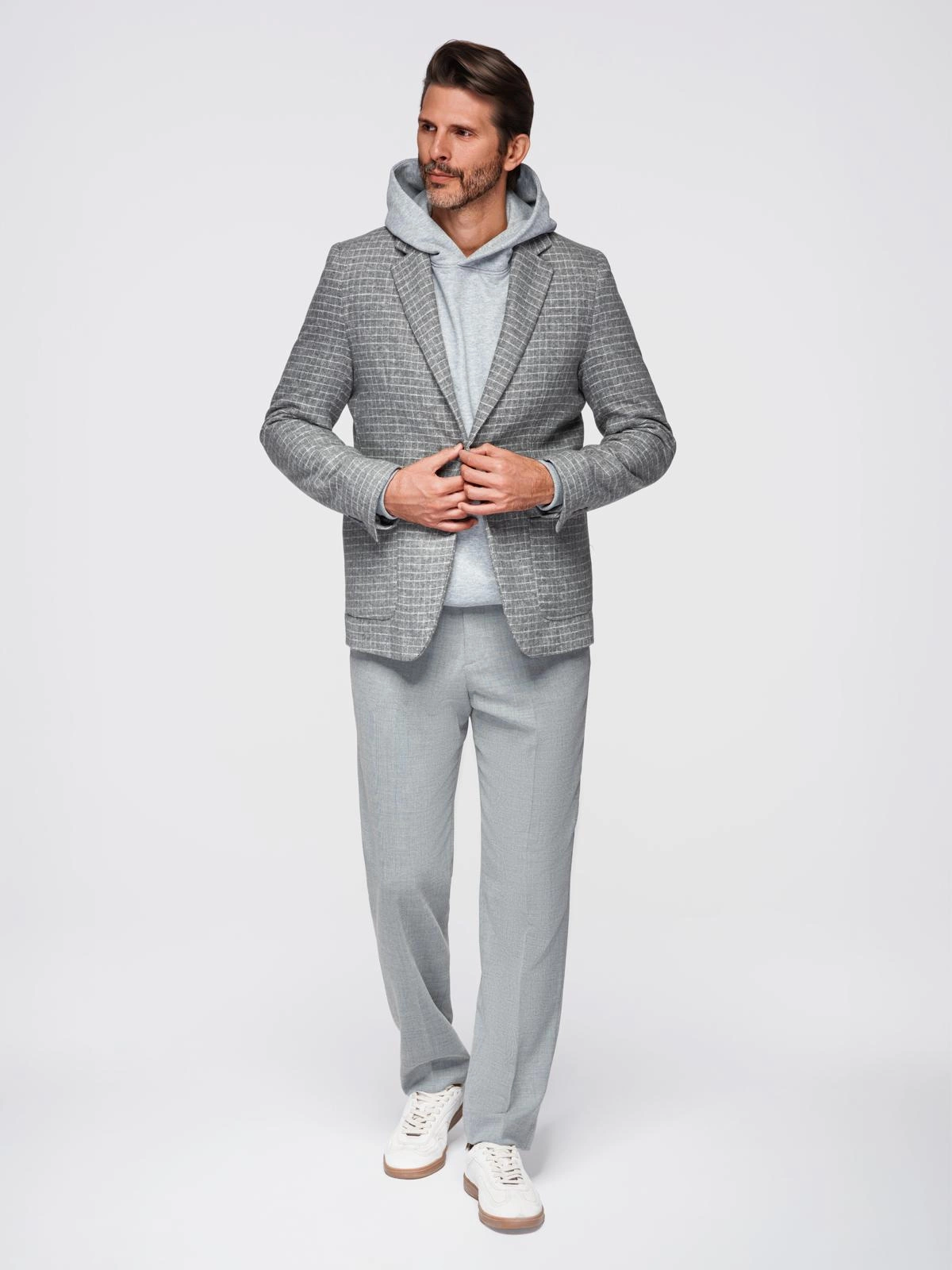 Pánska kockovaná bunda zo zmesi vlny - sivá V1 OM-BLZB-0117