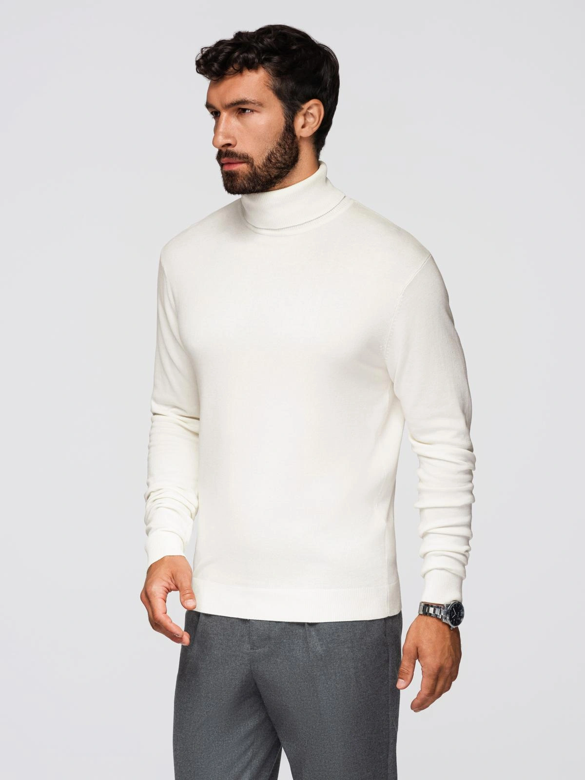 Pánsky pletený rolák s viskózou - ecru V3 OM-SWTN-0101