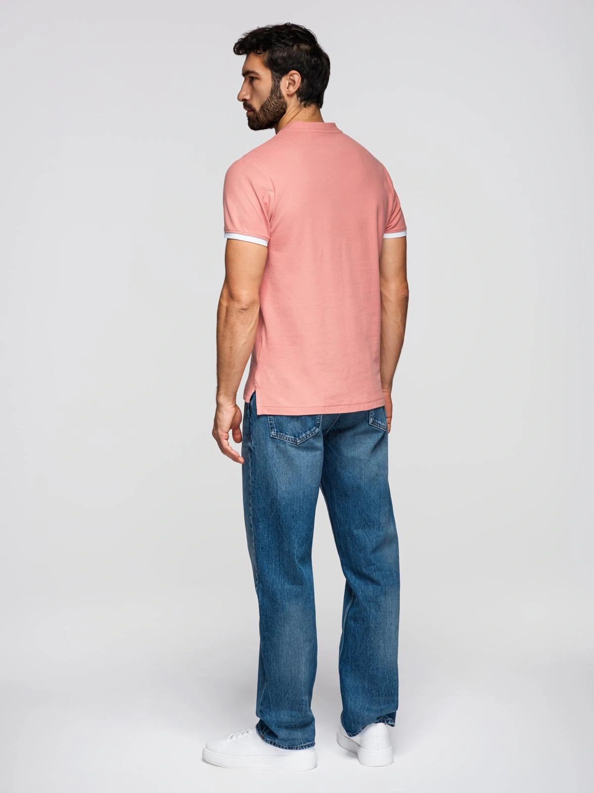 Pánska polokošeľa bez goliera - ružová V7 OM-TSCT-0156