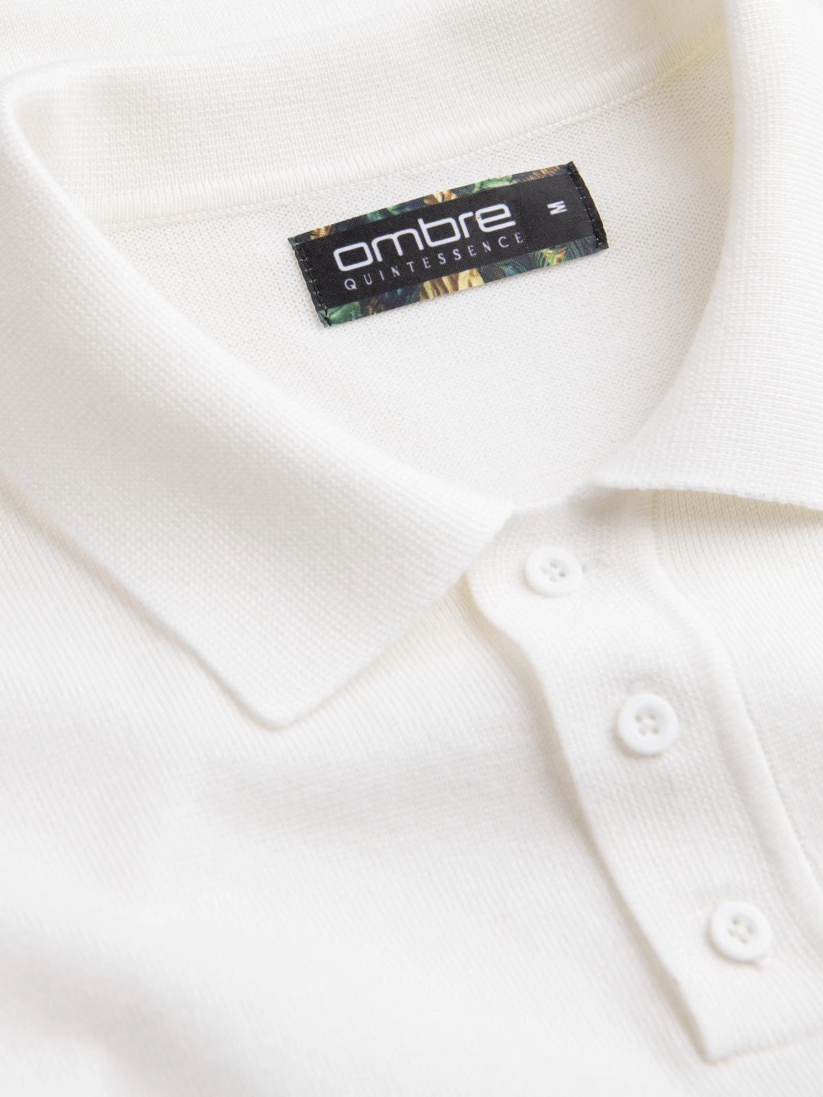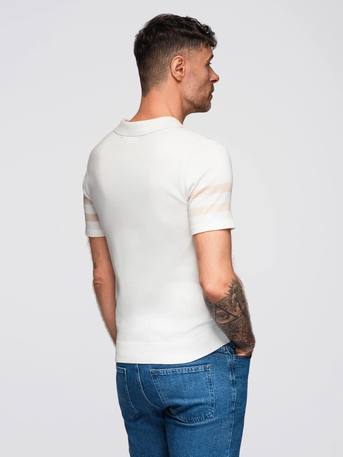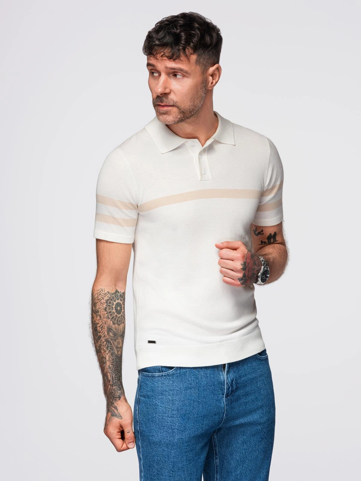 Pánska polokošeľa z mäkkej pleteniny s kontrastnými pruhmi - krémová V3 OM-POSS-0118