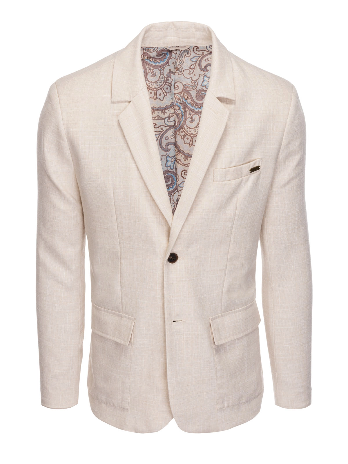 Pánske sako REGULAR strihu s ľanom - krémové V1 OM-BLZB-0128