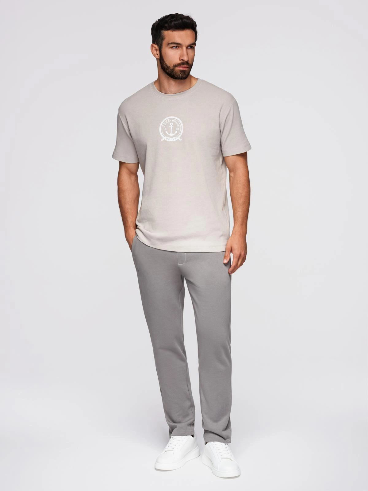 Pánske tepláky bez podšívky - sivé V8 OM-PABS-0206