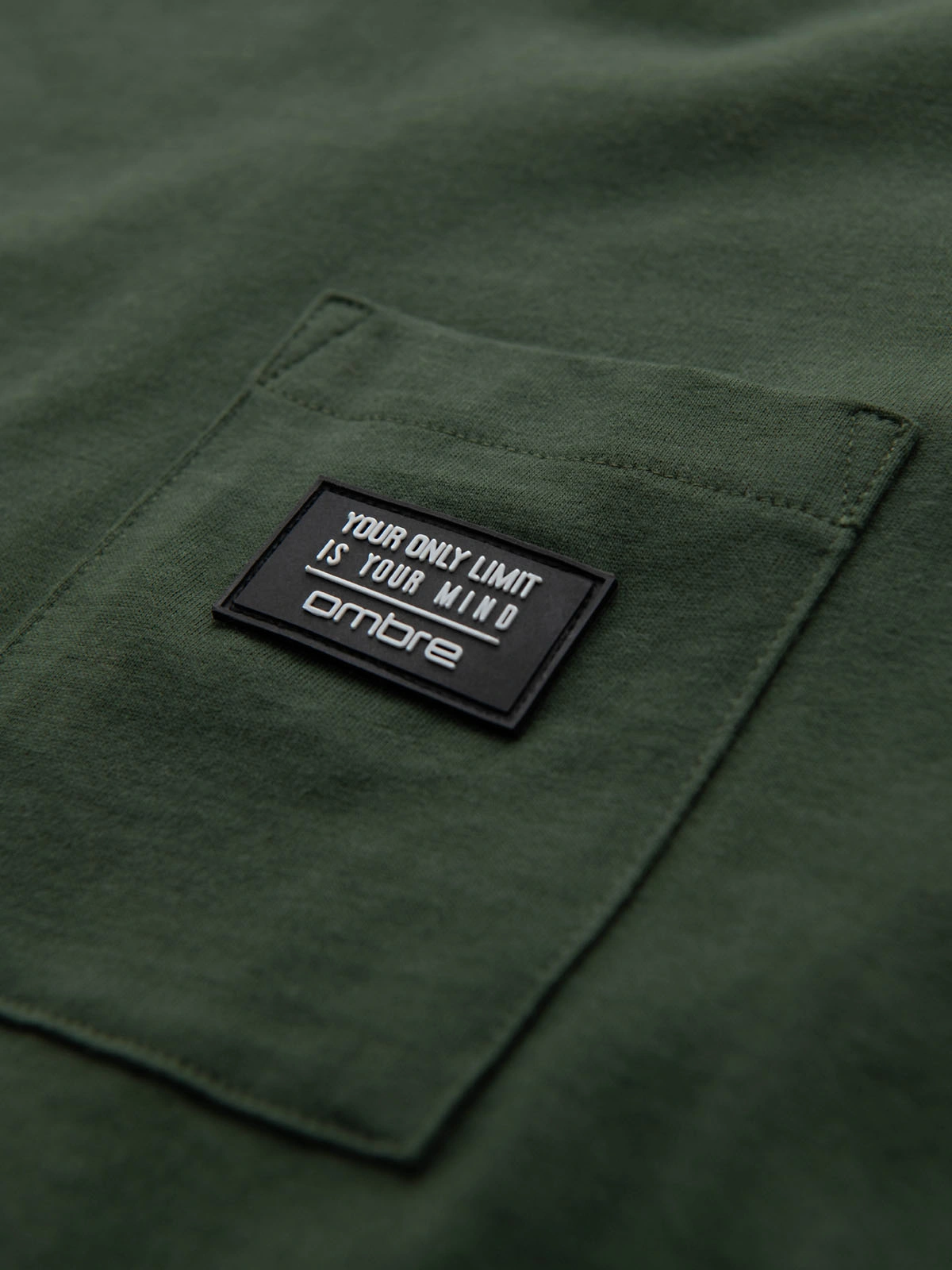 Pánske tričko na voľný čas s vreckom - tmavo olivovo zelené V4 OM-TSCT-0109