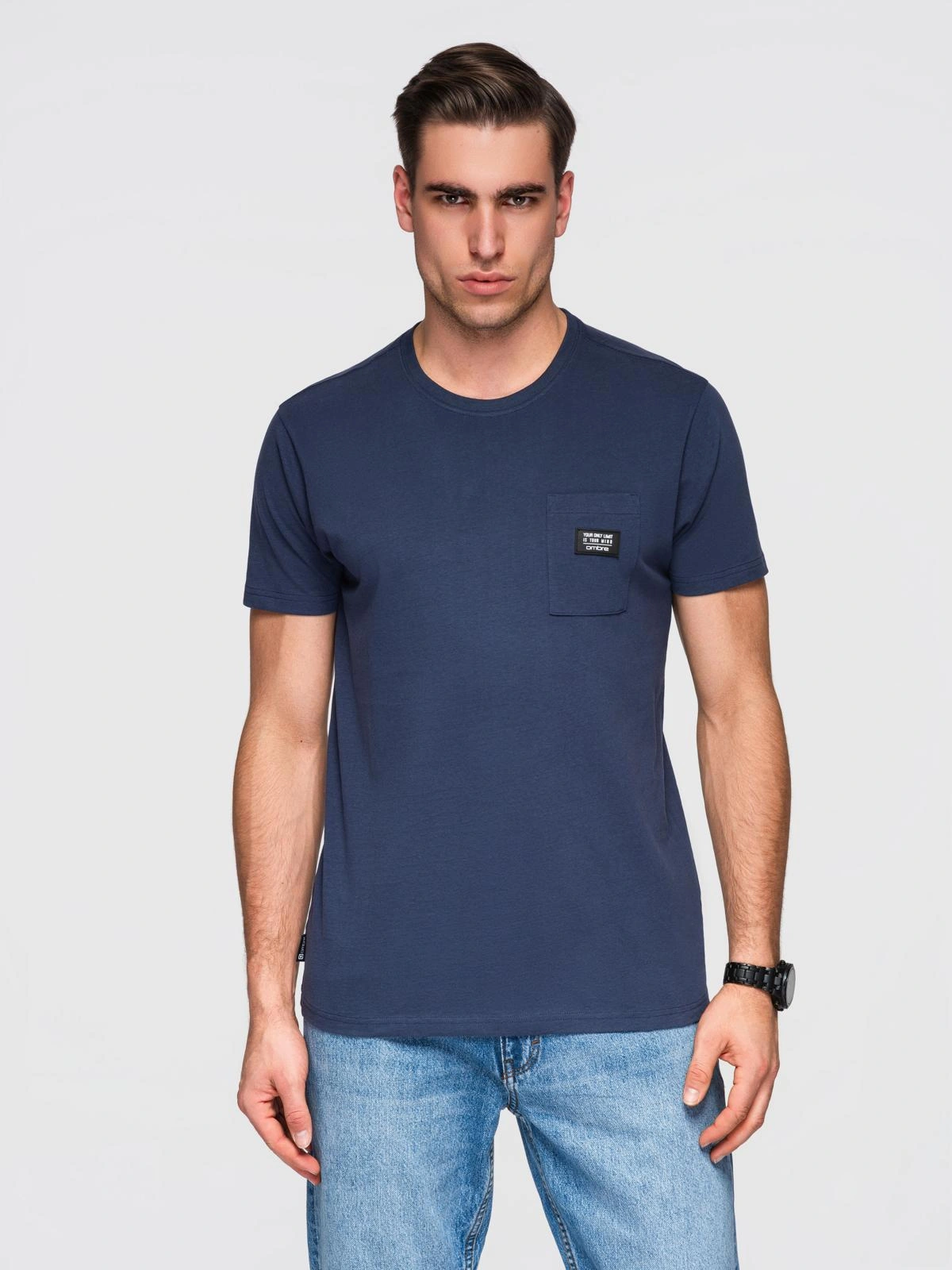 Pánske tričko na voľný čas s vreckom - tmavomodré V10 OM-TSCT-0109