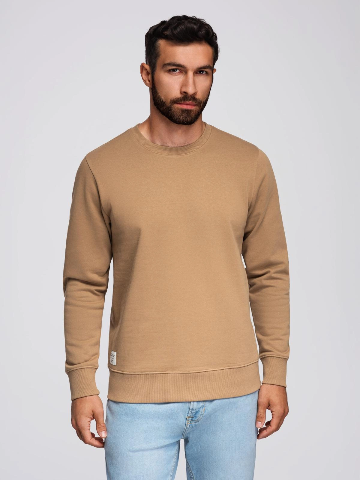 Pánska mikina BASIC s okrúhlym výstrihom - hnedá V2 OM-SSBN-0175