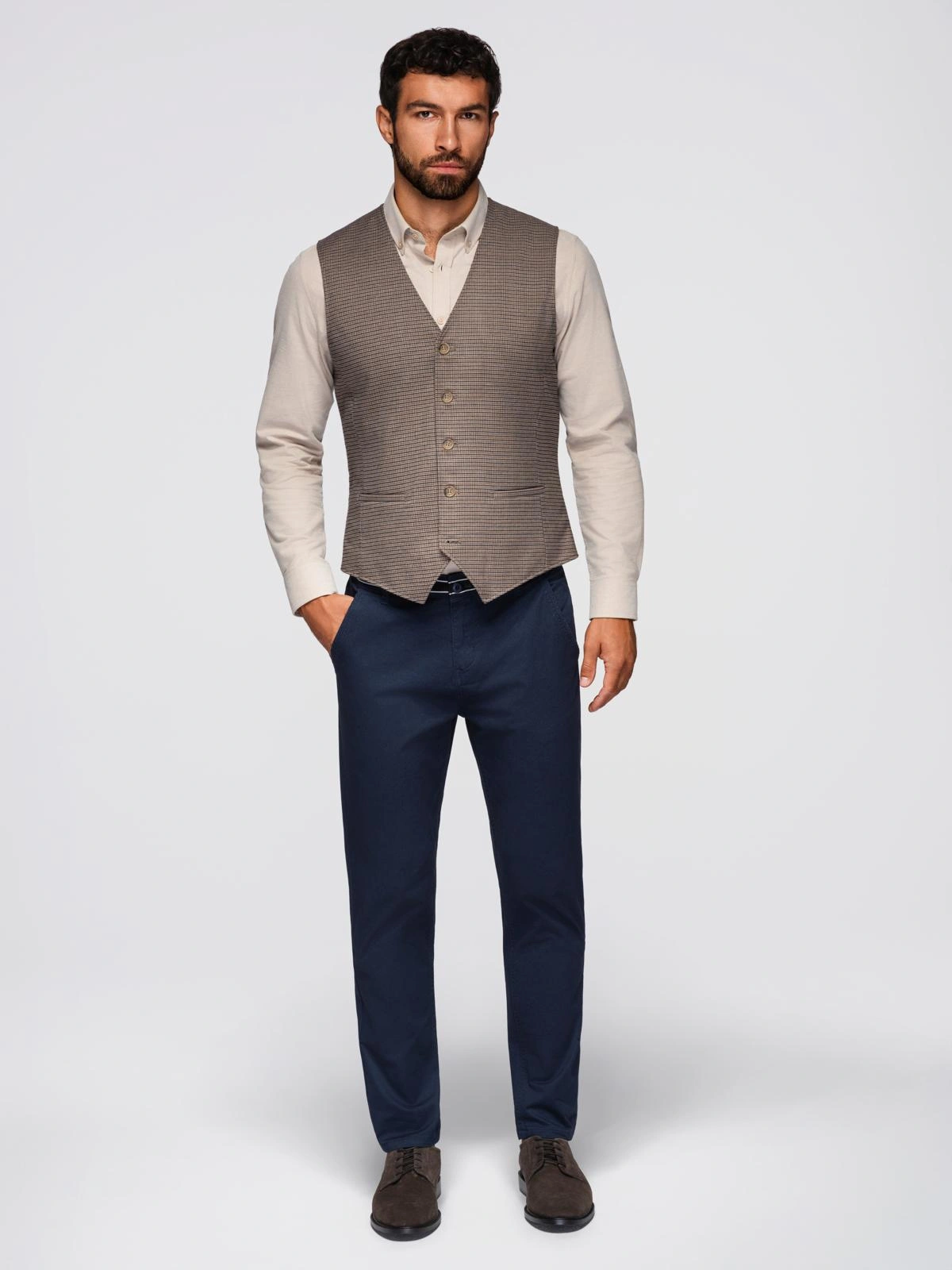 Pánske chino nohavice s ozdobným pásom - tmavomodré V2 OM-PACP-0118