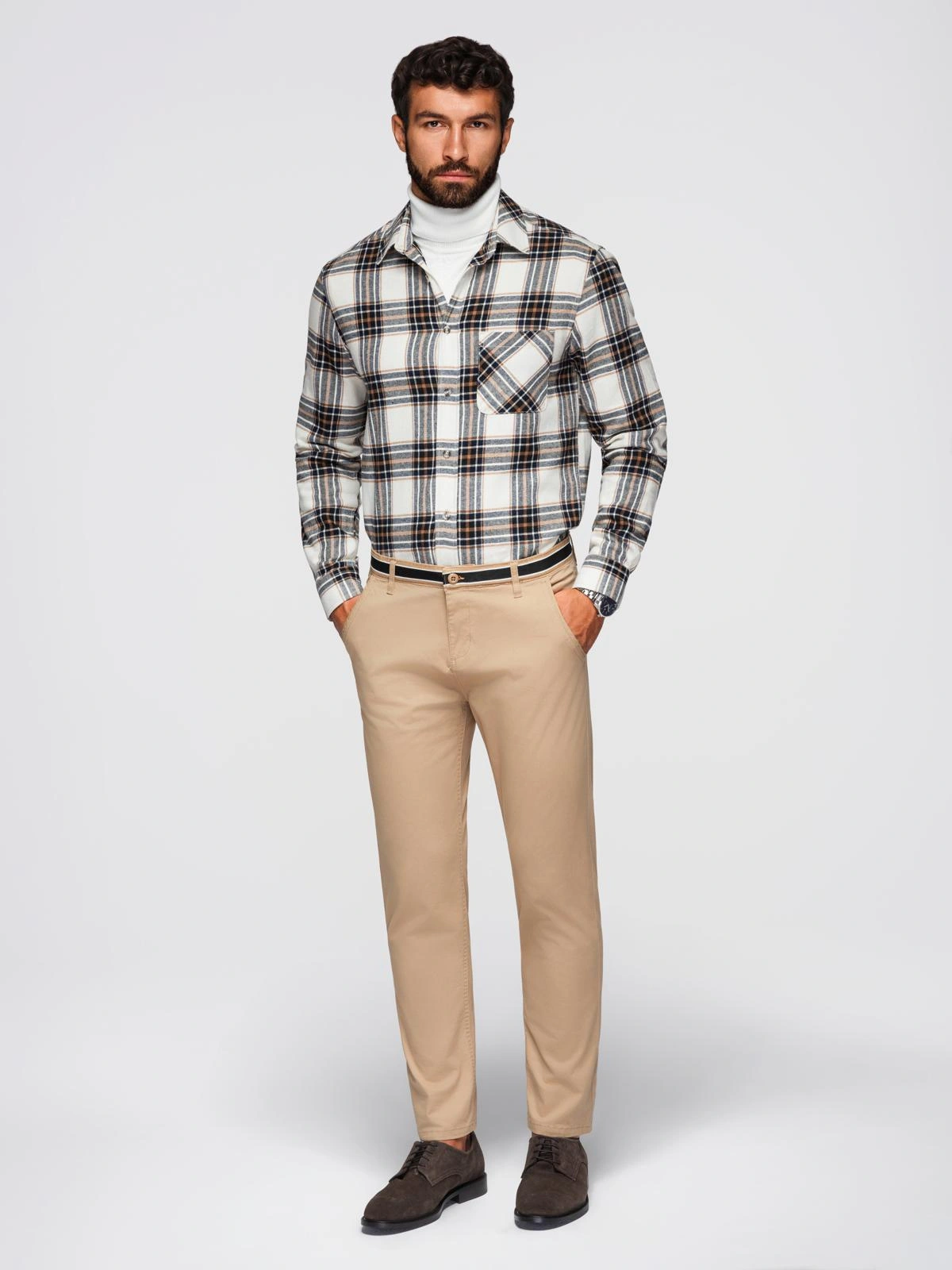 Pánske chino nohavice s ozdobným pásom - pieskové V5 OM-PACP-0118