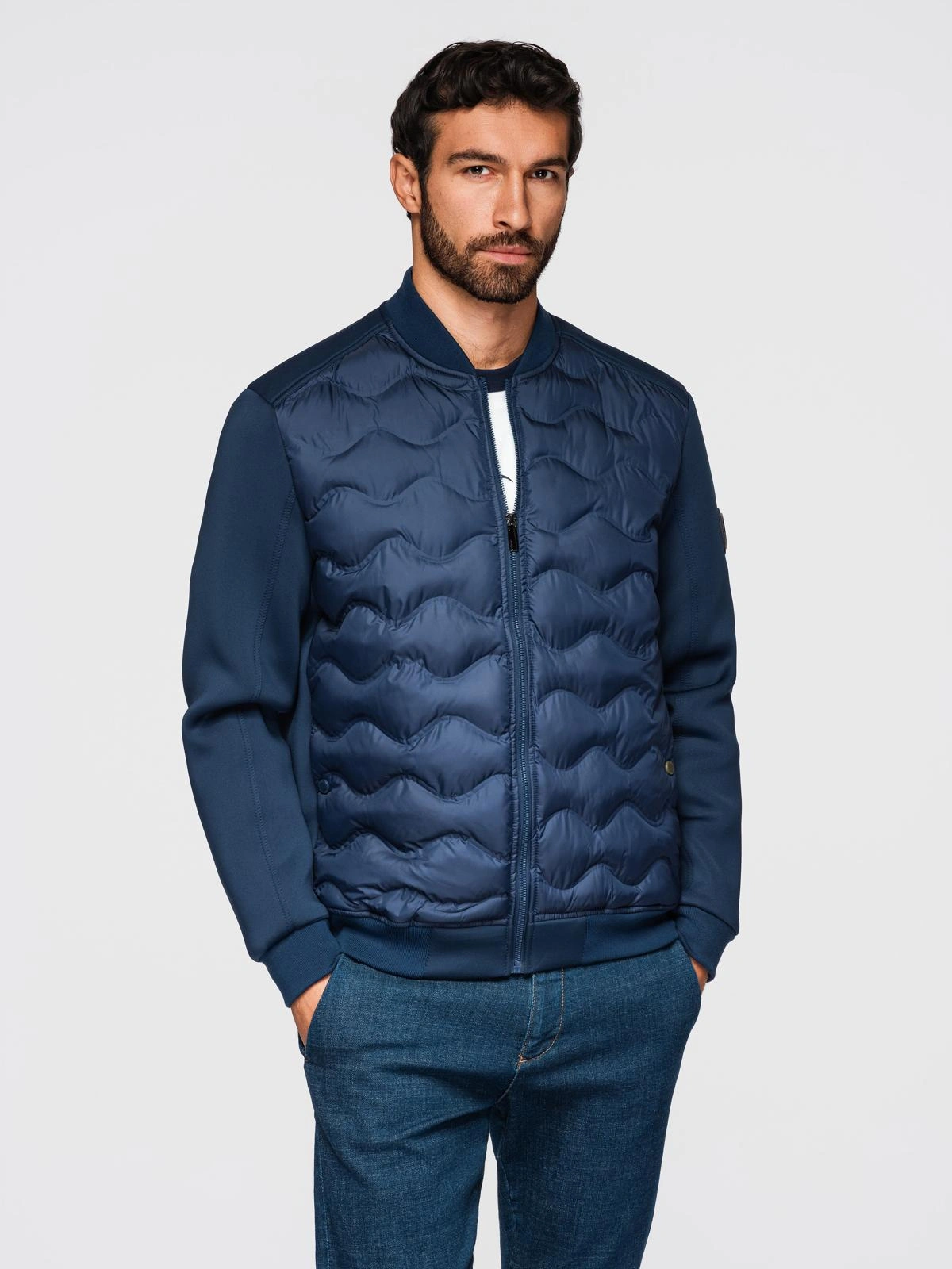 Pánska prešívaná bunda bomber - tmavomodrá V2 OM-JALP-0141