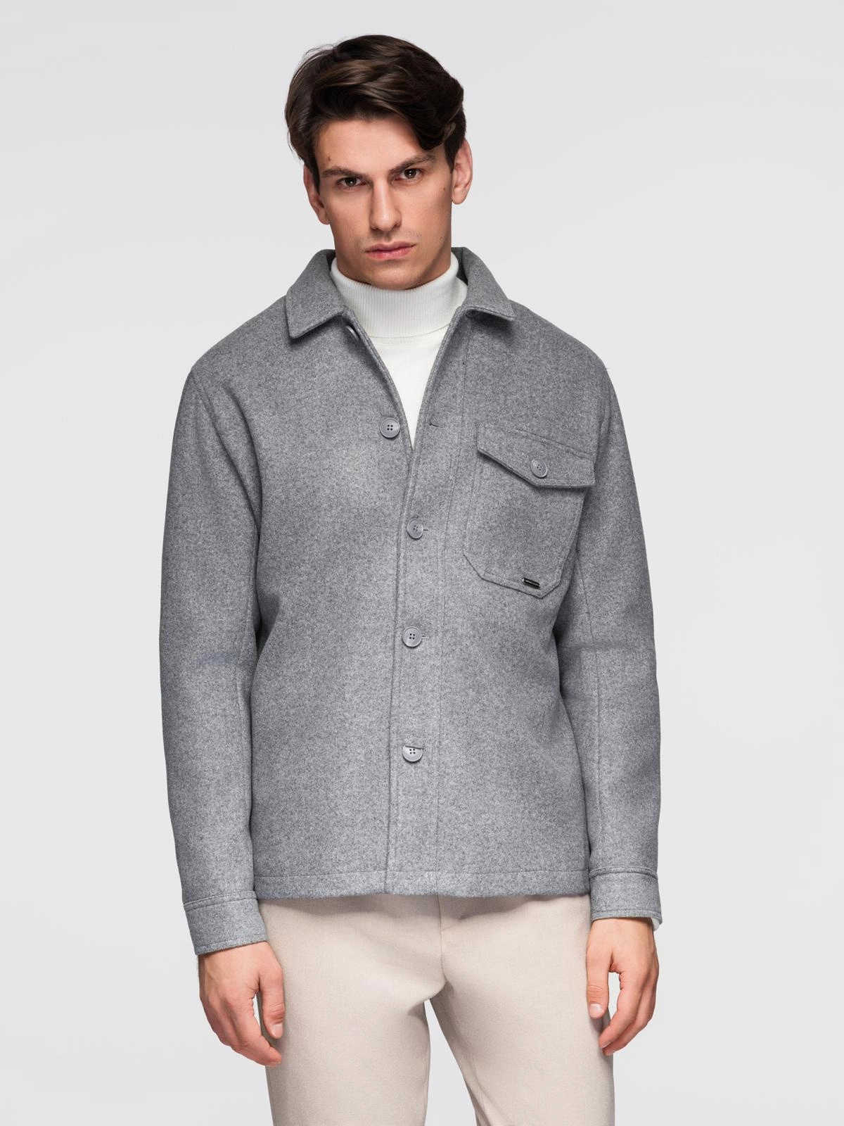 Pánska flanelová bunda z kolekcie Ombre Quintessence dodá každému outfitu punc elegancie. Vďaka mäkkej a na dotyk príjemnej tkanine s prímesou viskózy je bunda ľahká a ležérne sa nosí. Hoci je veľká náprsná kapsa osobitnou ozdobou, bunda je obohatená aj o skryté bočné vrecká a vnútorné vrecko všité do podšívky. Dizajn bundy je inšpirovaný strihmi košieľ, takže sa dá štylizovať na mnoho spôsobov. Výborne sa bude hodiť k ležérnym aj formálnym outfitom