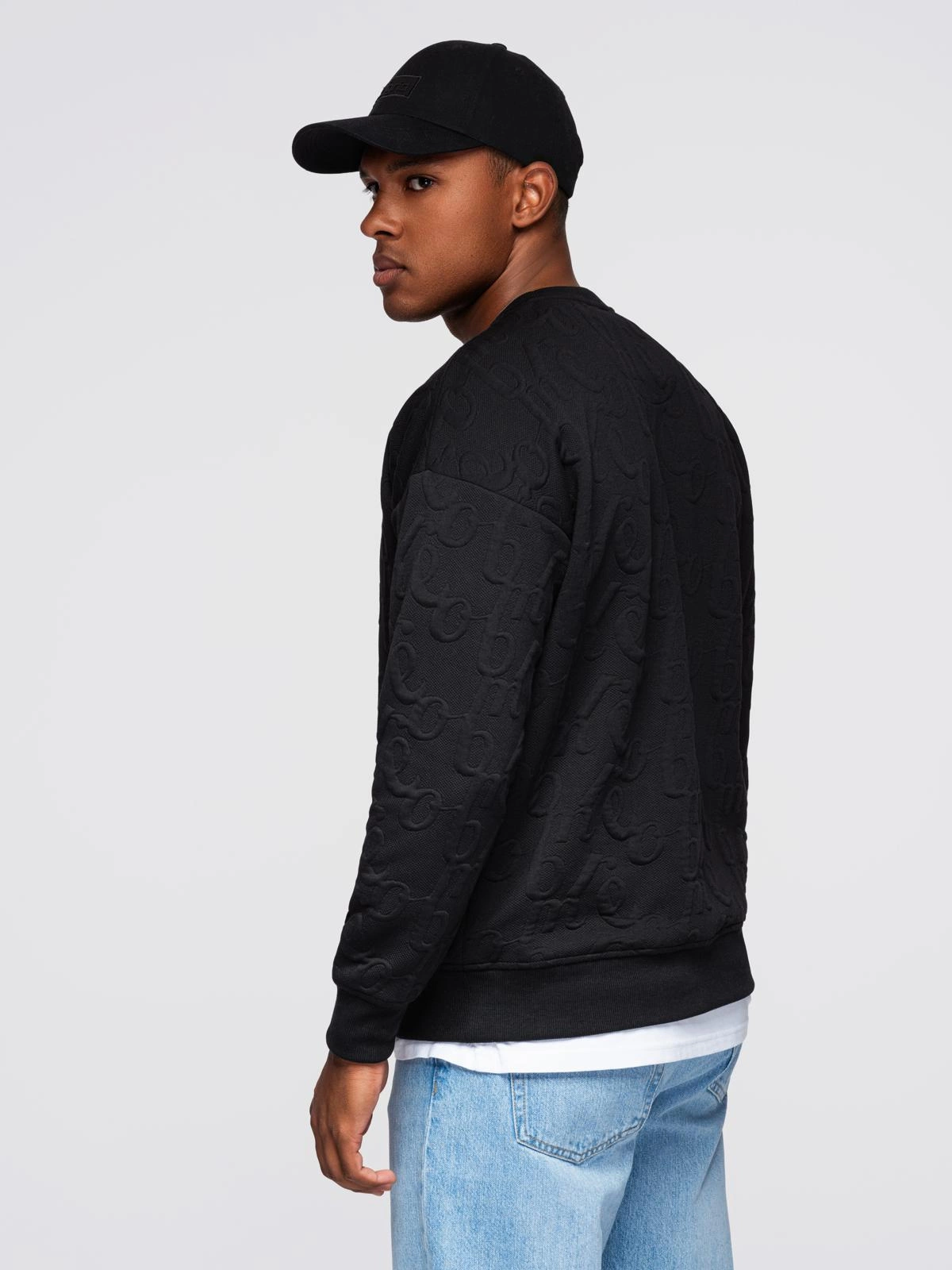 Pánska mikina RELAXED FIT s vyrazeným nápisom - čierna V1 OM-SSNZ-0164