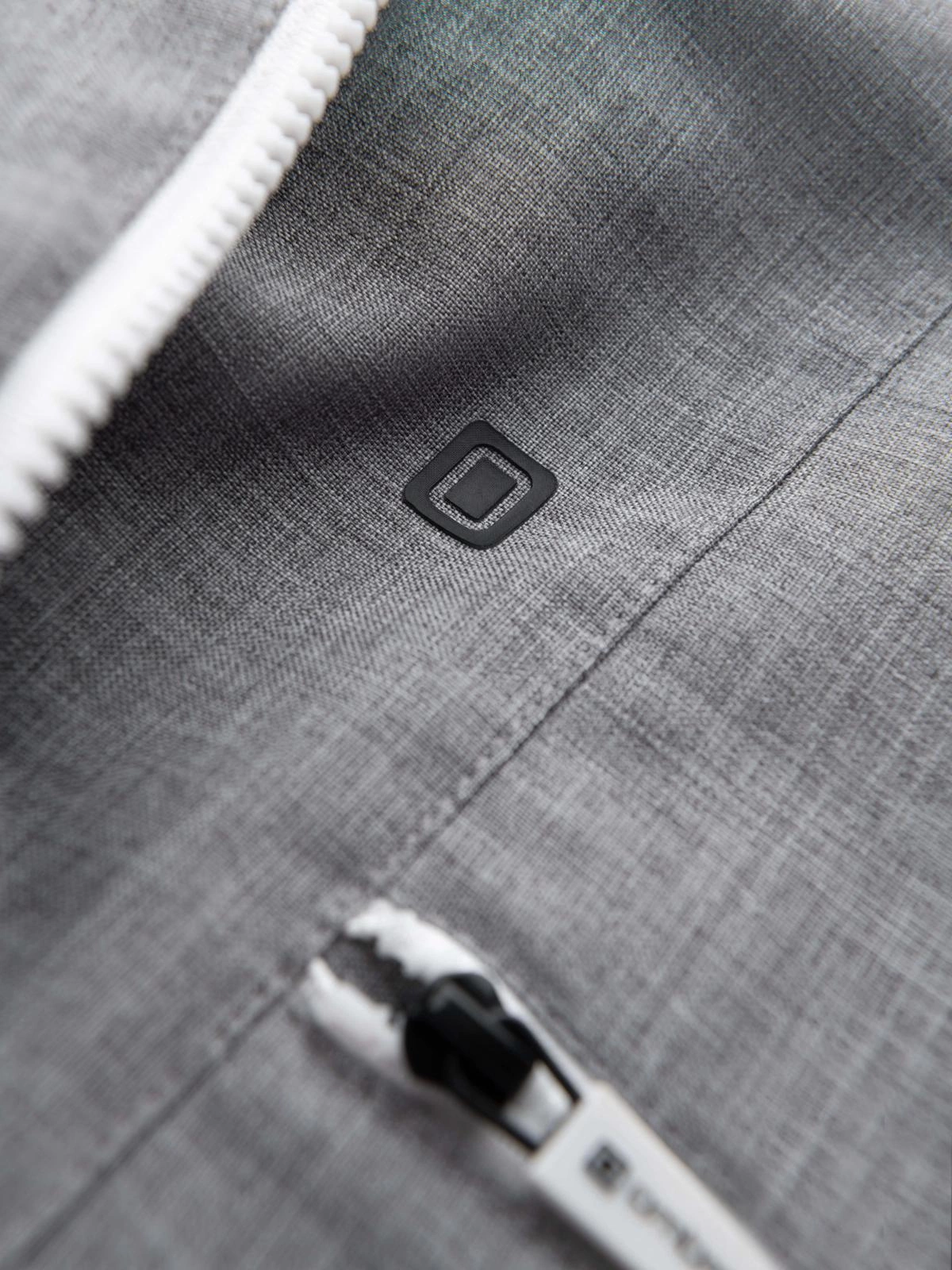 Melanžová bunda s námorníckym nádychom osloví milovníkov outdoorového štýlu. Vďaka mäkkej flísovej podšívke sa pohodlne nosí v premenlivom počasí a účinne udržiava teplotu. O funkčnosť bundy sa starajú aj praktické vrecká na zips a nastaviteľná kapucňa. Bunda je ľahká a zbaliteľná - ľahko sa zmestí do batohu alebo cestovnej tašky.