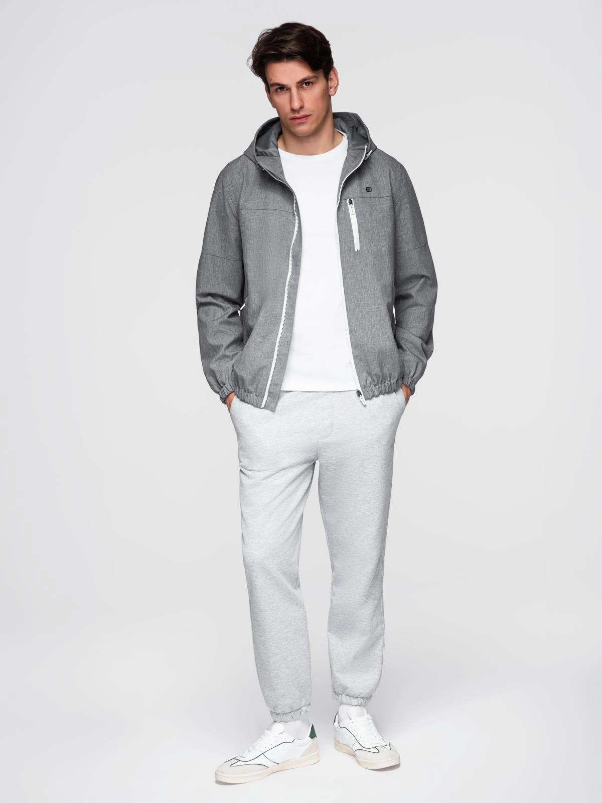 Pánska ľahká športová bunda s fleecovou podšívkou - sivá V3 OM-JANP-0136