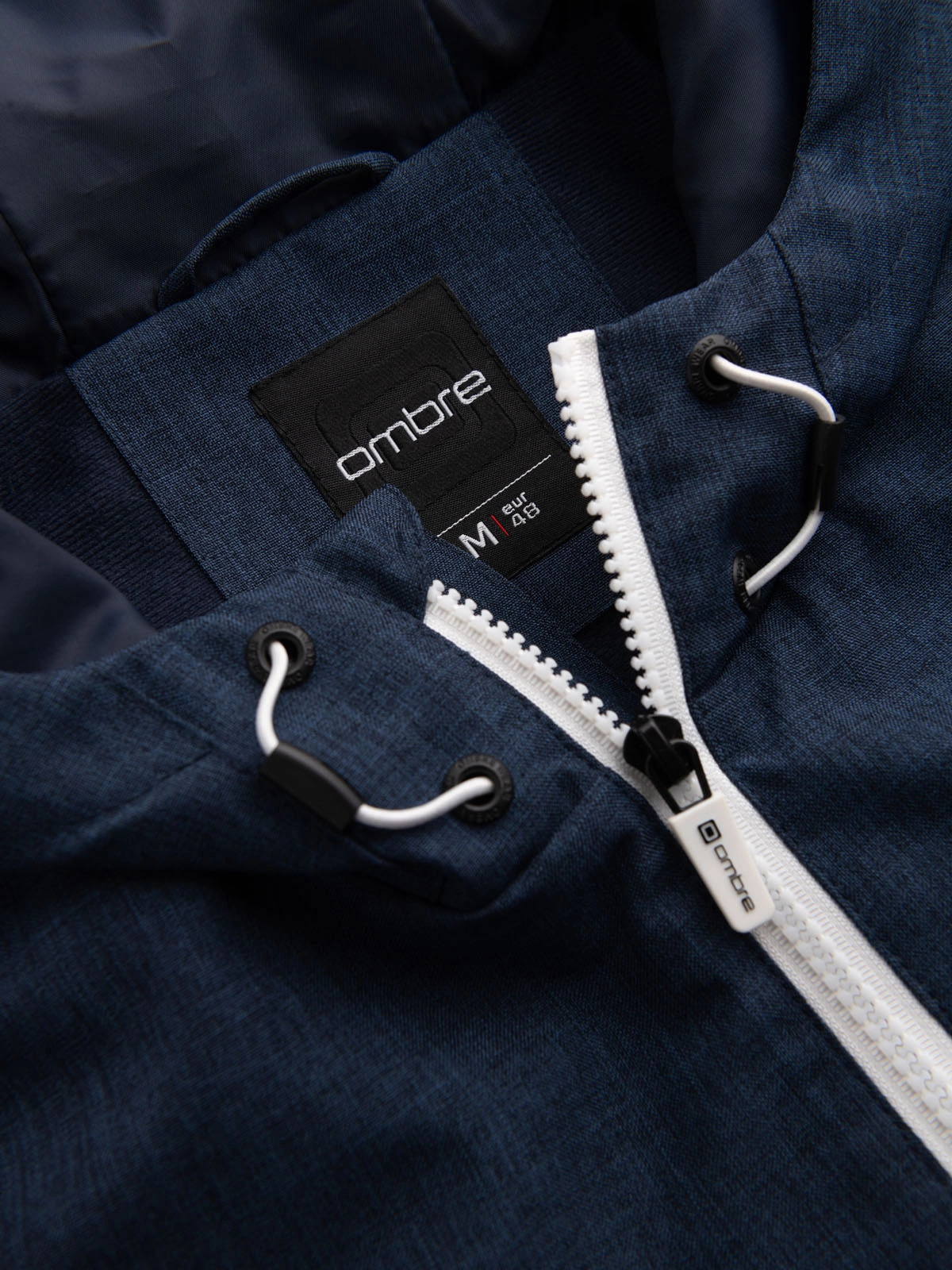 Pánska ľahká športová bunda s fleecovou podšívkou - tmavomodrá V2 OM-JANP-0136
